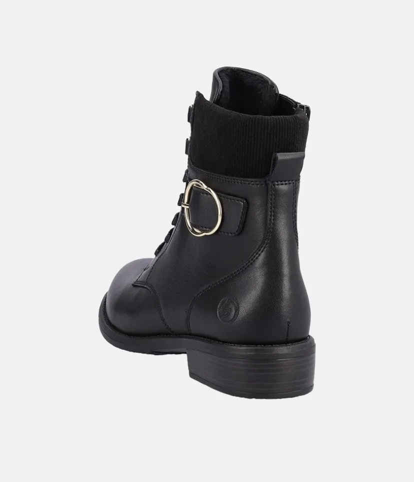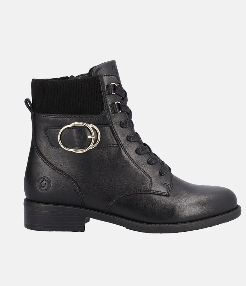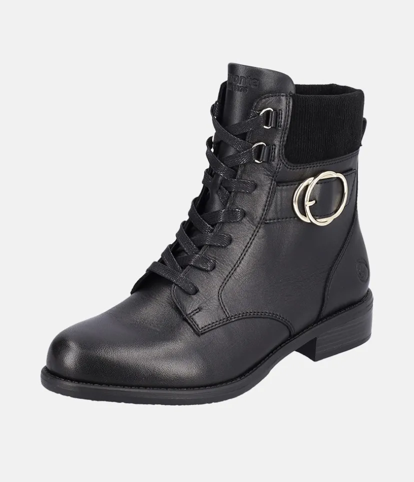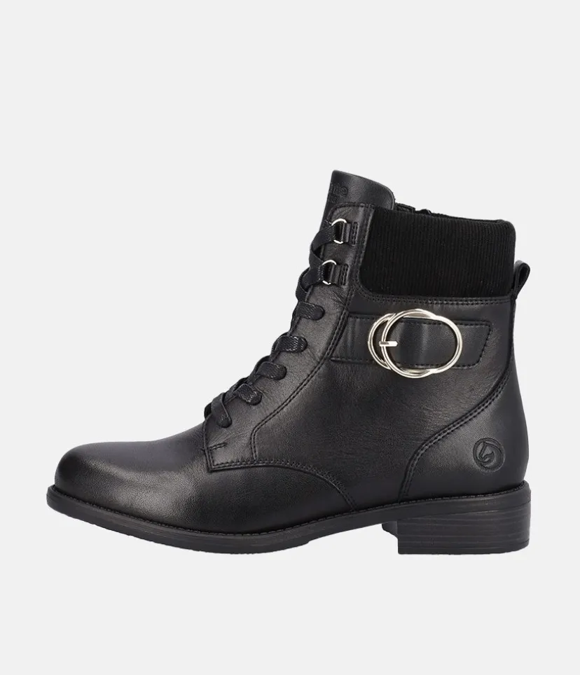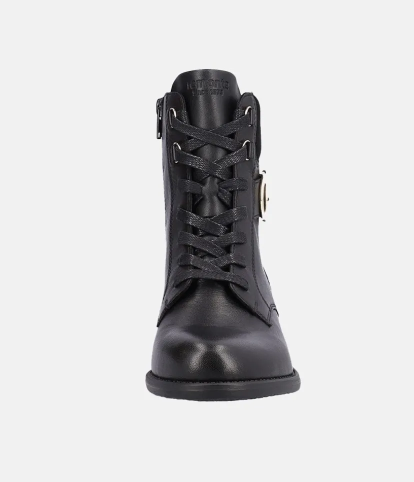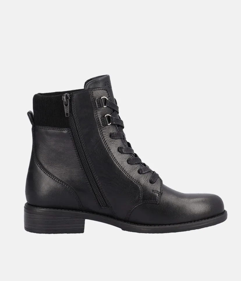 A Fab new style from Remonte this season! Featuring a black leather upper, these boots are casual and chic at the same time and will go with every style! The laces allow for and adjustable fit while the zip allows for easy on and off. The boot has a soft textile insole and a non-slip and flexible outsole.