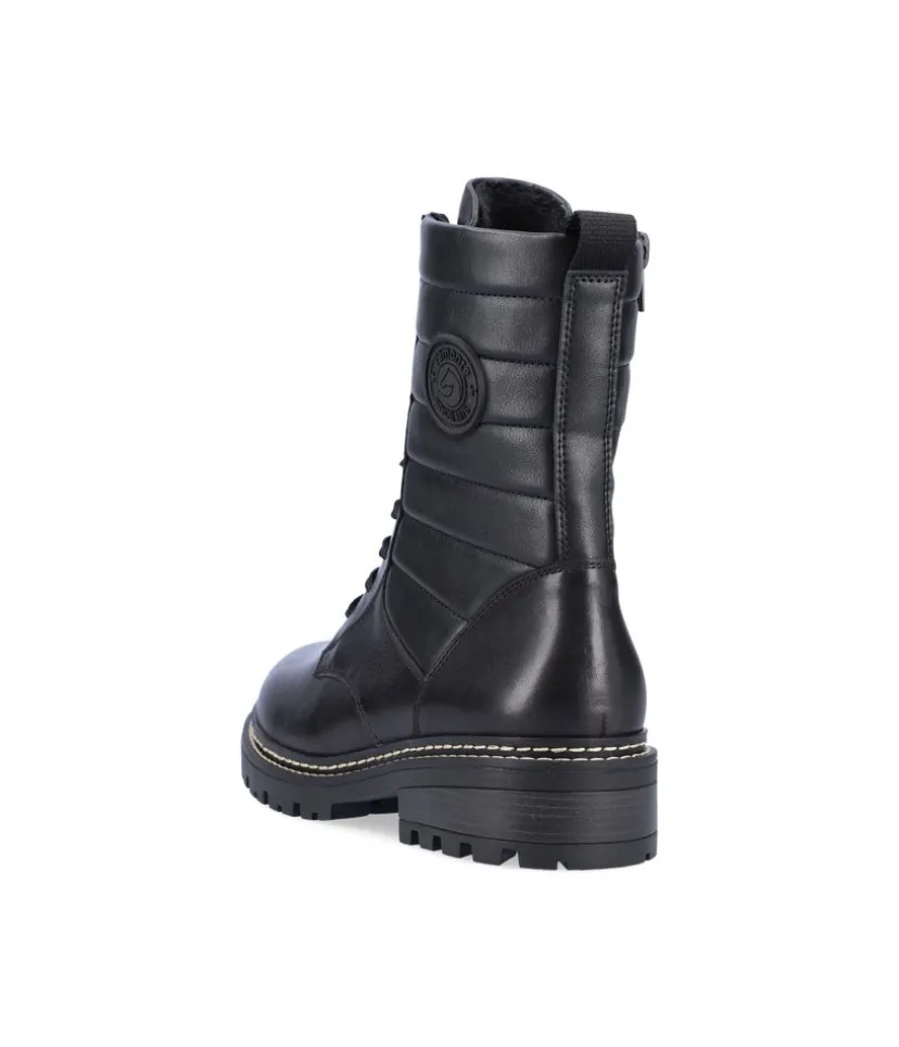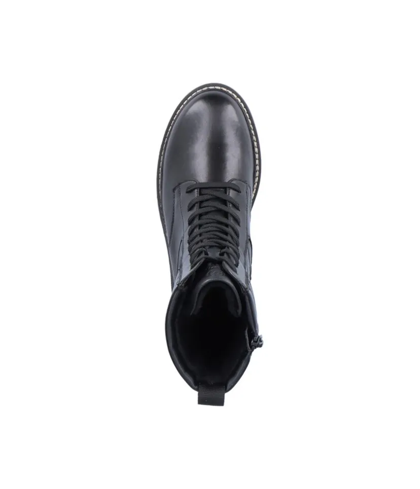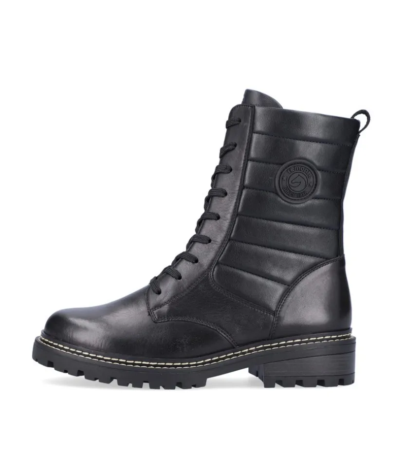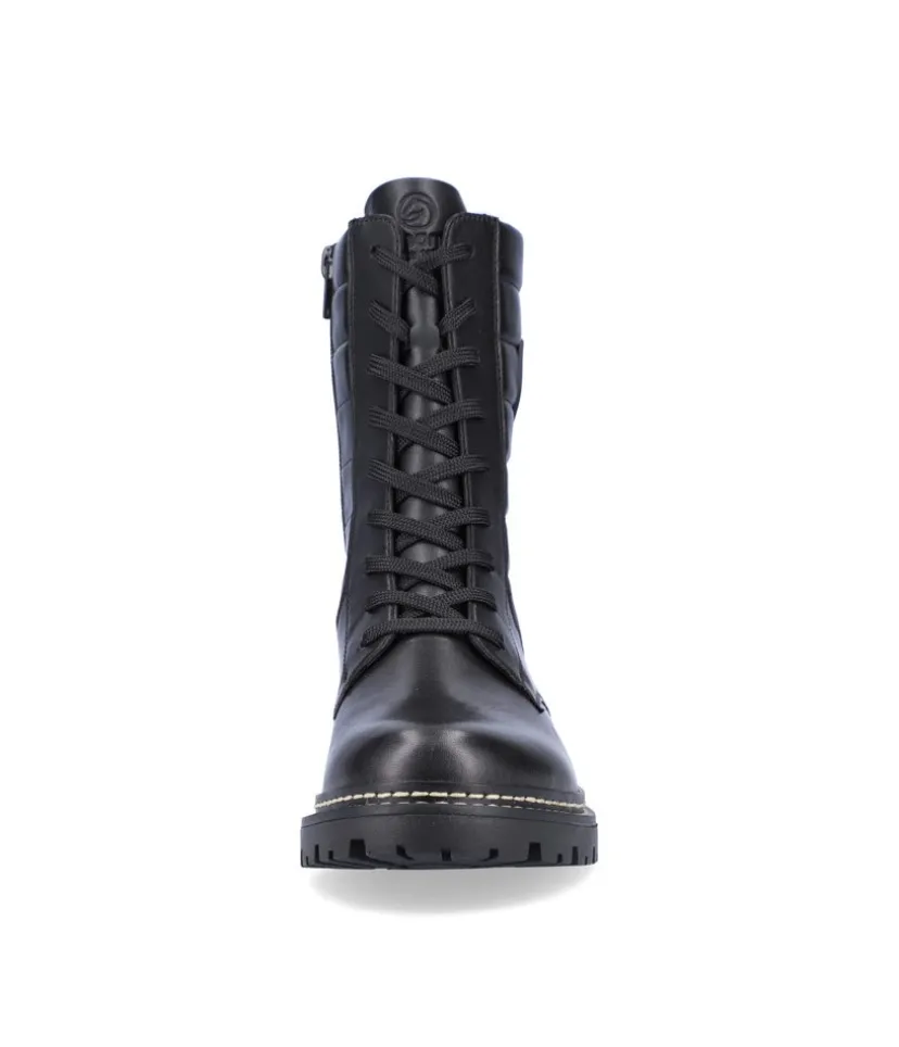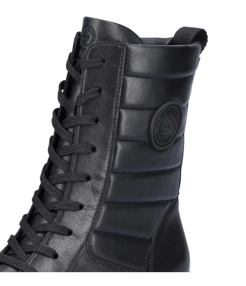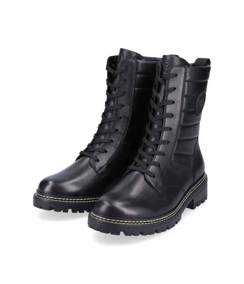 Let your inner Rock Chick out with these ankle boots from Remonte! Featuring a black leather upper, these boots casual and chic at the same time and will go with every style! The laces allow for and adjustable fit while the zip allows for easy on and off. The boot has a soft textile insole and a non-slip and flexible outsole.