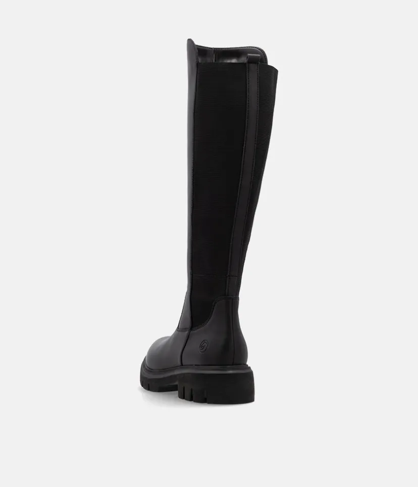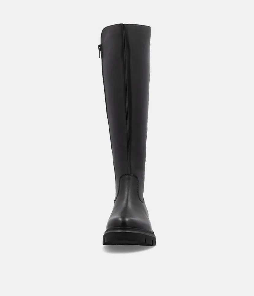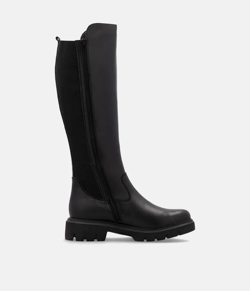 This is a Beautiful Long Leather Boot from Remonte with a full-length side zipper. The elasticated panel at the back allows for adjustment in the width to suit your calf creating the perfect fit. In addition, the textile lining lends softness and warmth and the removable cushioned footbed absorbs shock and stress.