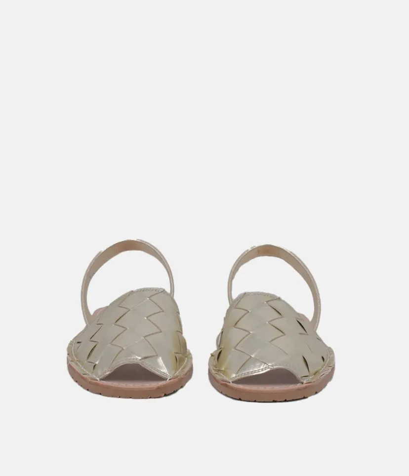 You can’t go wrong when it comes to sheer elegance with a Golden metallic Abarca Sandal. This model combines the traditional shoe shape with a stunning Woven Metallic colour leather and contrasts with the sand-coloured insole and caramel sole to perfection.