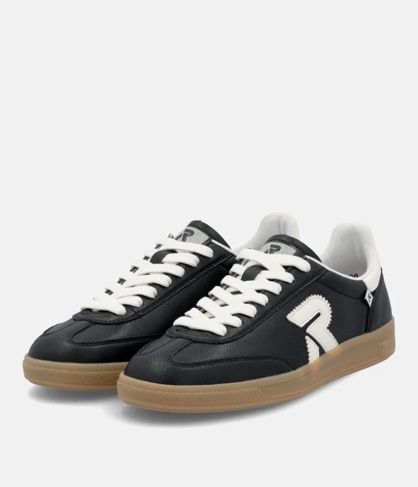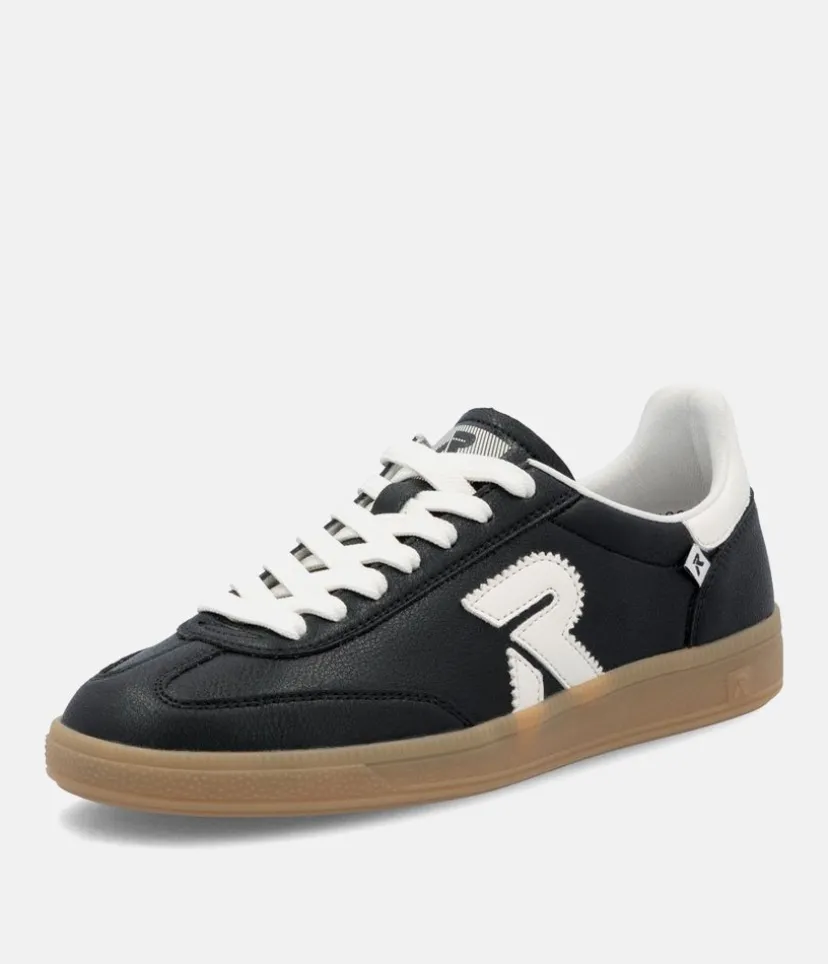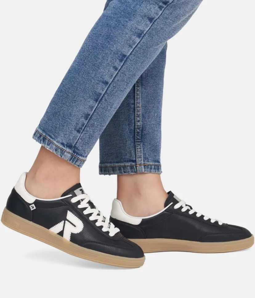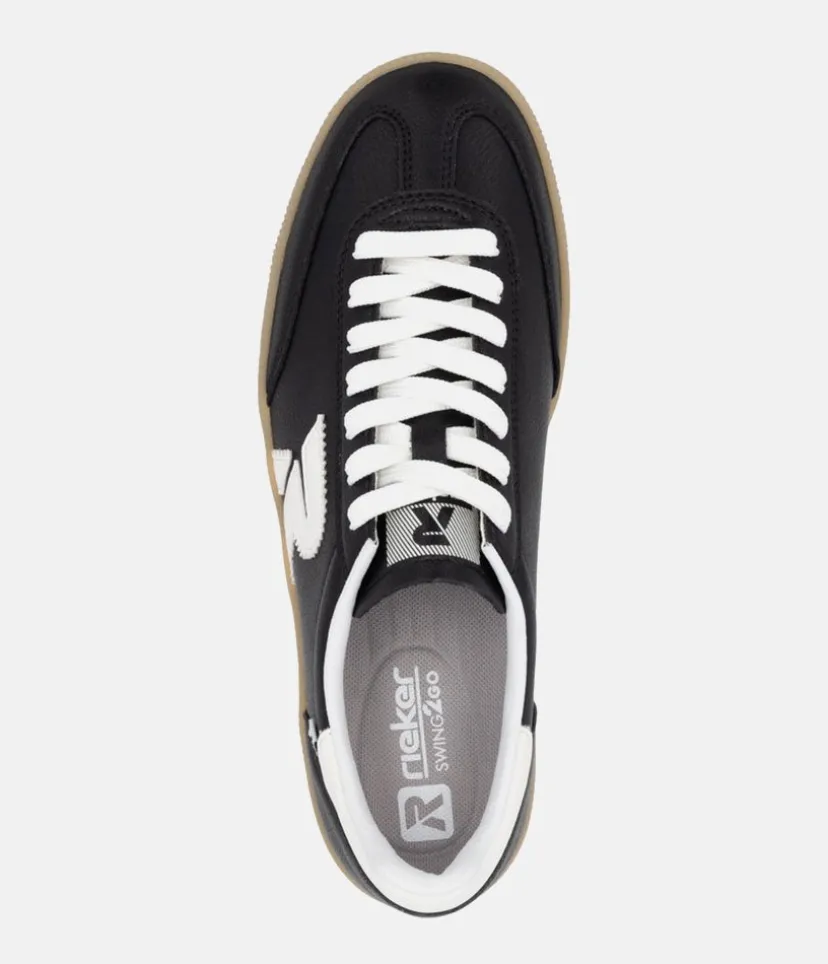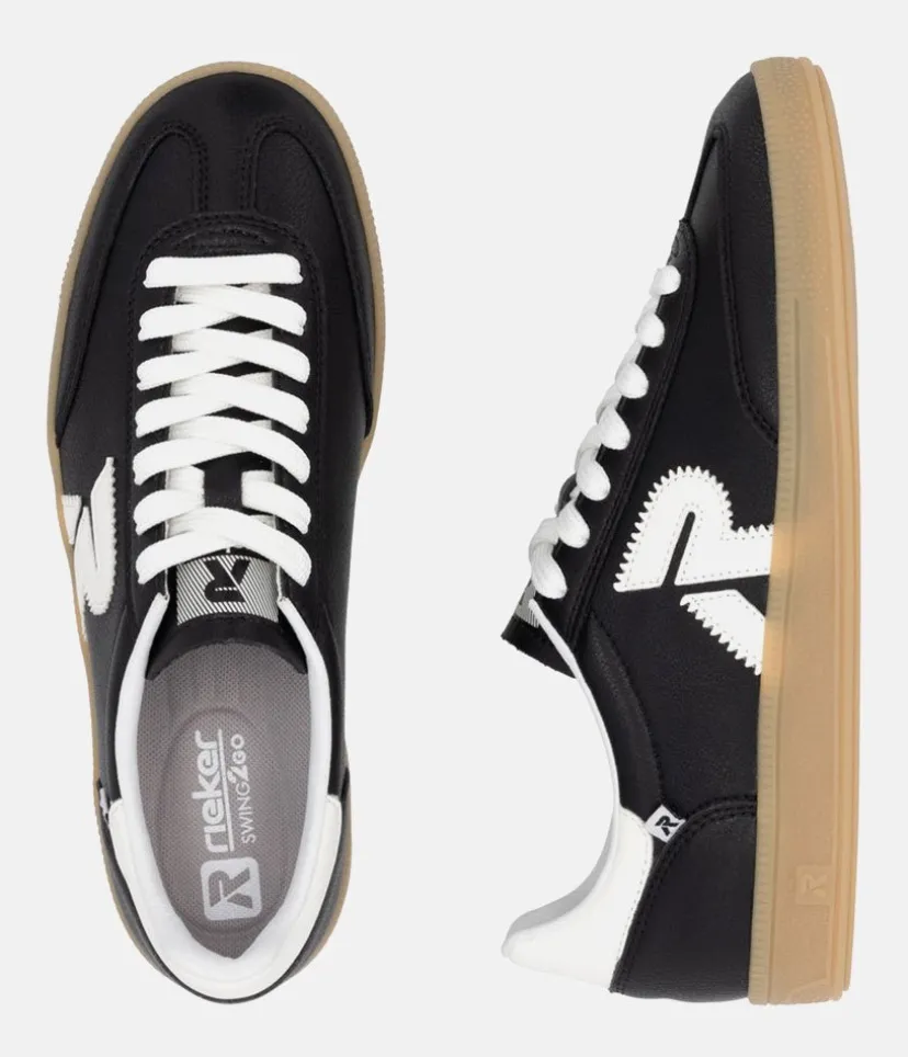 This is a Fabulous New Sporty low top Trainer from Rieker this season. Update your look and add a trendy new style to your wardrobe with these high quality Black leather trainers, featuring contrasting white panels. Fastened with white laces this New style offers comfort with the Swing2GO insole with arch support that provides shock absorption and energy at each step. The lightweight, wear-resistant and durable outsole provides good traction and stability.