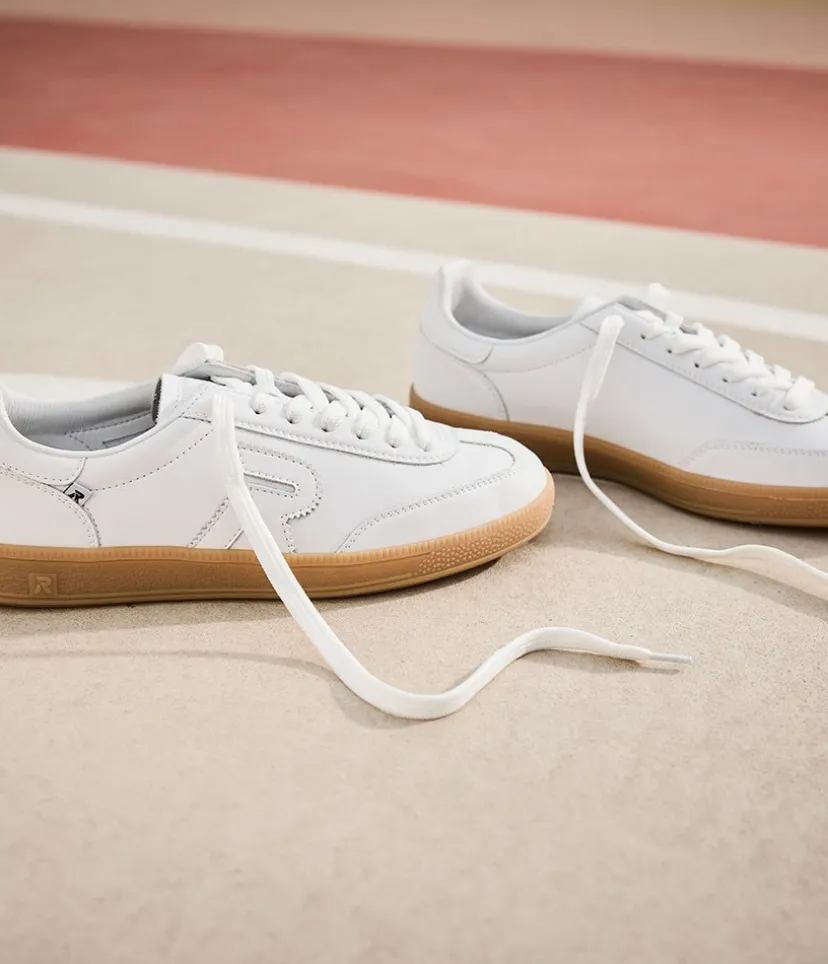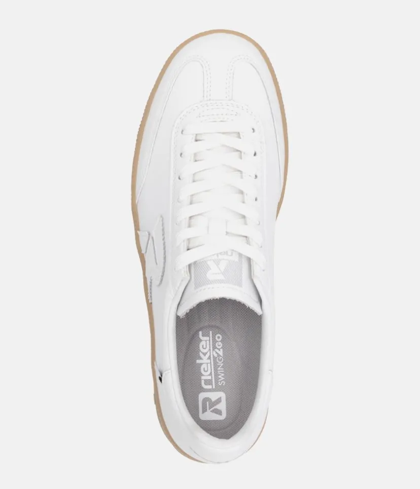 This is a Fabulous New Sporty low top Trainer from Rieker this season. Update your look and add a classic style to your wardrobe with these high quality white leather trainers. Fastened with white laces this New style offers comfort with the Swing2GO insole with arch support that provides shock absorption and energy at each step. The lightweight, wear-resistant and durable outsole provides good traction and stability. These white Rieker low-top sneakers are made from high-quality suede leather.