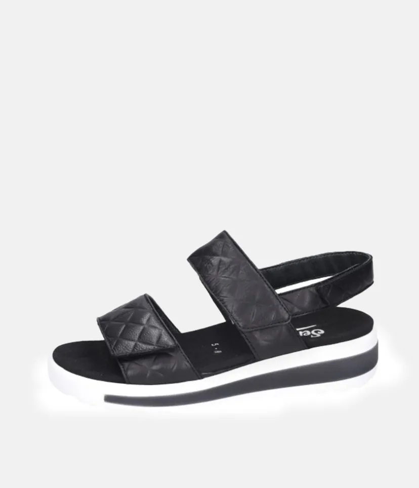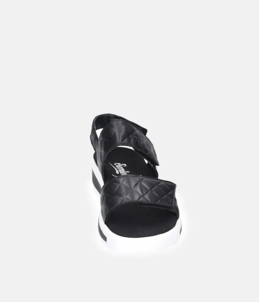 A Gorgeous Black Quilted Wedge from Semler sitting atop a contrasting combi wedge. Fashionable and feminine, this is a super comfortable style featuring a removeable insole. This Wedge sandal will be sure to provide a very comfortable fit and the extra-light air cushion sole is fashionably emphasized and is gentle on the joints and non-slip.