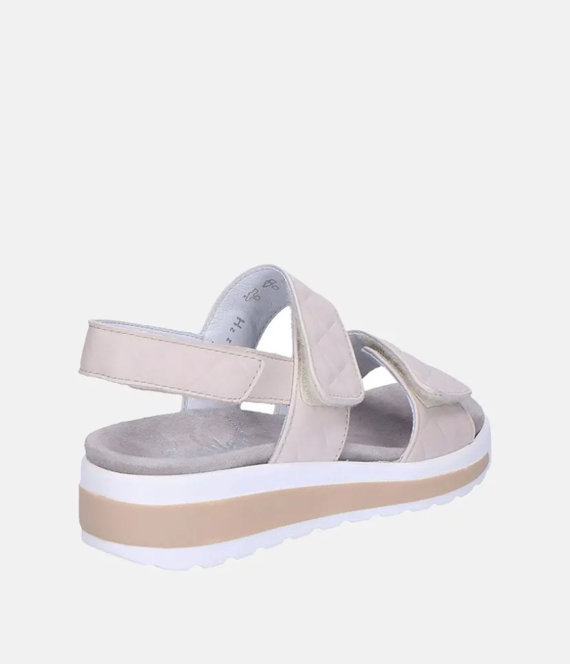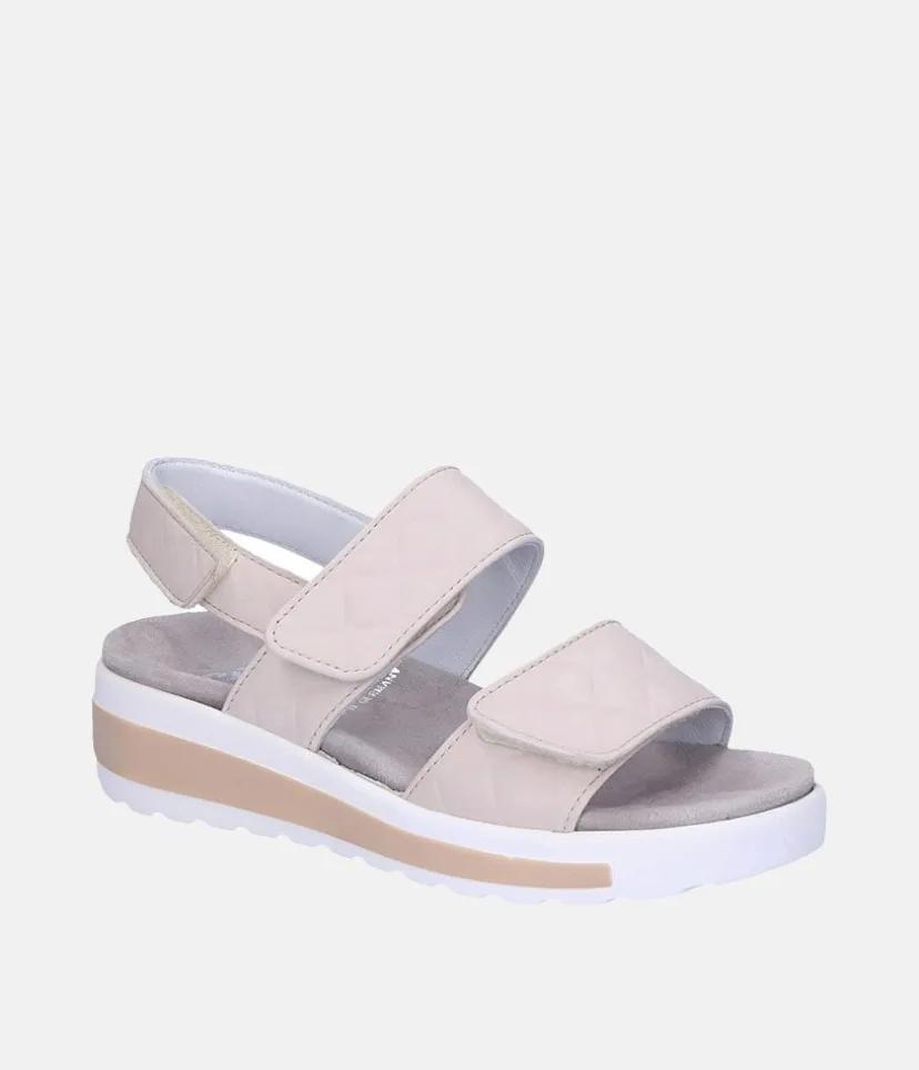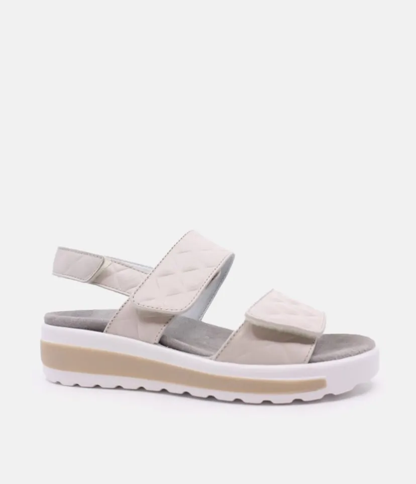 A Gorgeous Cream Quilted Wedge from Semler sitting atop a contrasting White and Beige combi wedge. Fashionable and feminine, this is a super comfortable style featuring a removeable insole. This Wedge sandal will be sure to provide a very comfortable fit and the extra-light air cushion sole is fashionably emphasized and is gentle on the joints and non-slip.