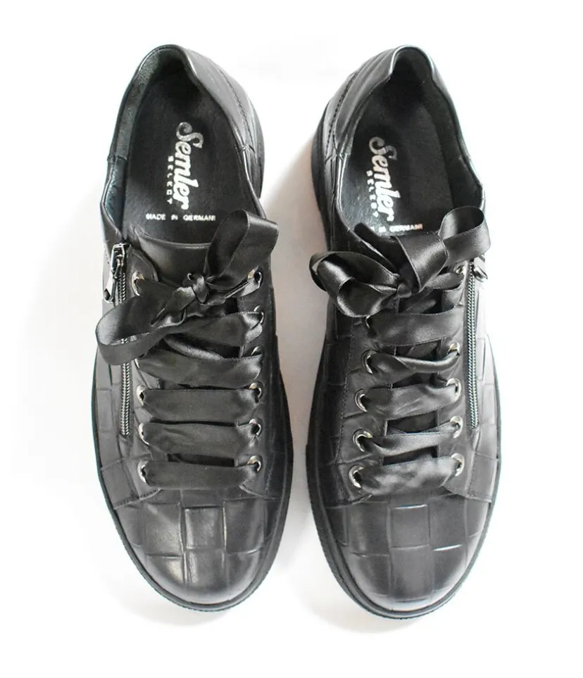 A Super on Trend Luxurious Sporty Style from Semler. Fashionable and feminine, this is a super comfortable sneaker. The insole is removable and ensures a very comfortable fit and the extra-light air cushion sole is fashionably emphasized and is gentle on the joints and non-slip.