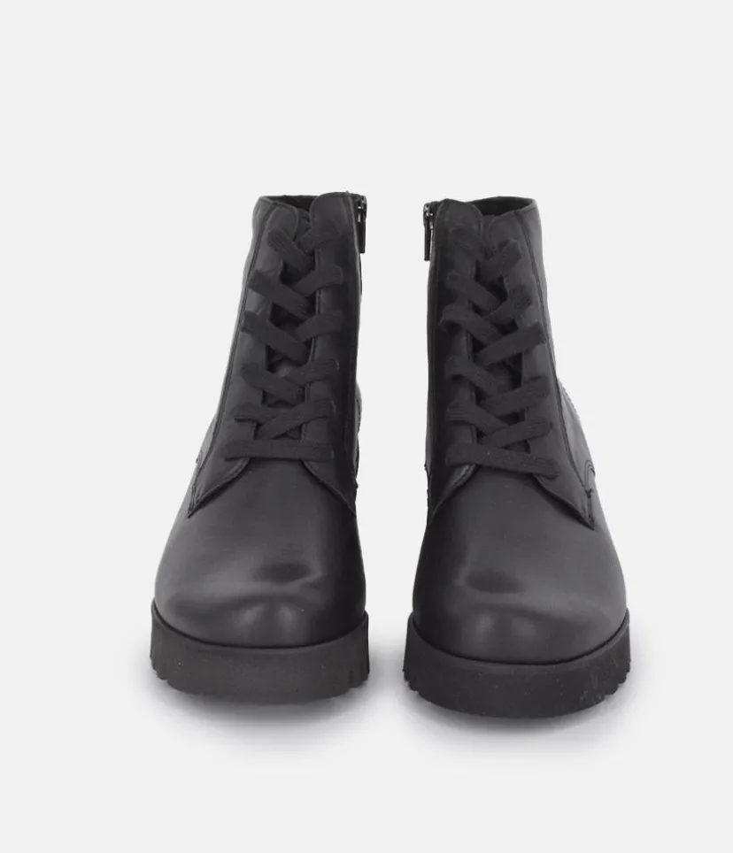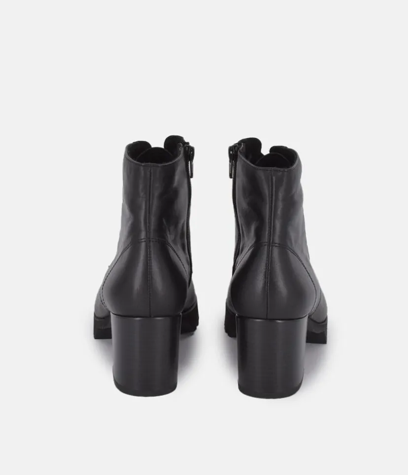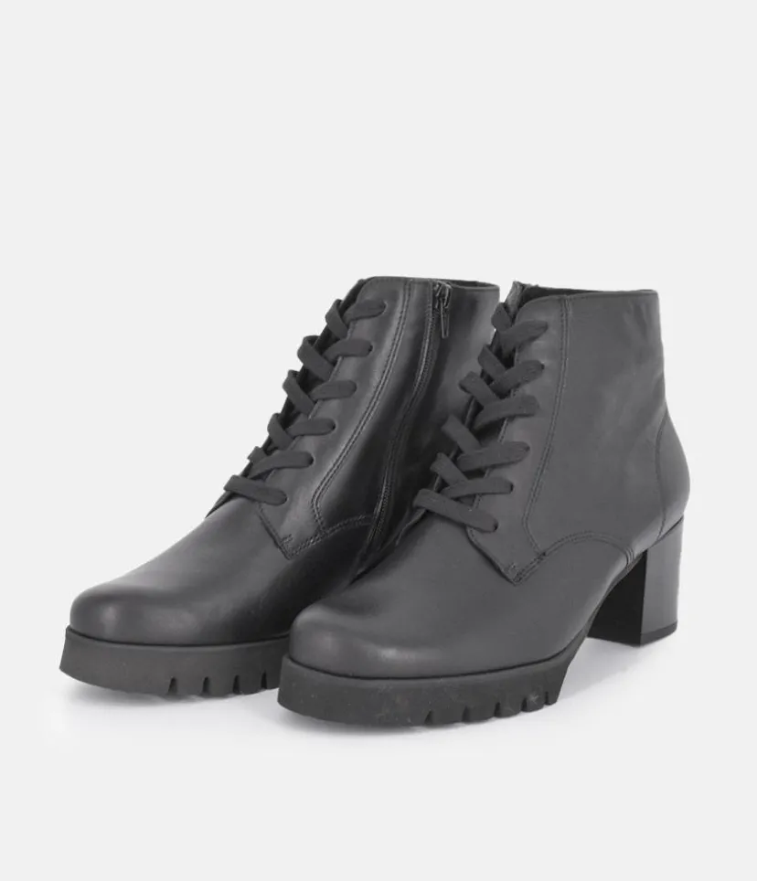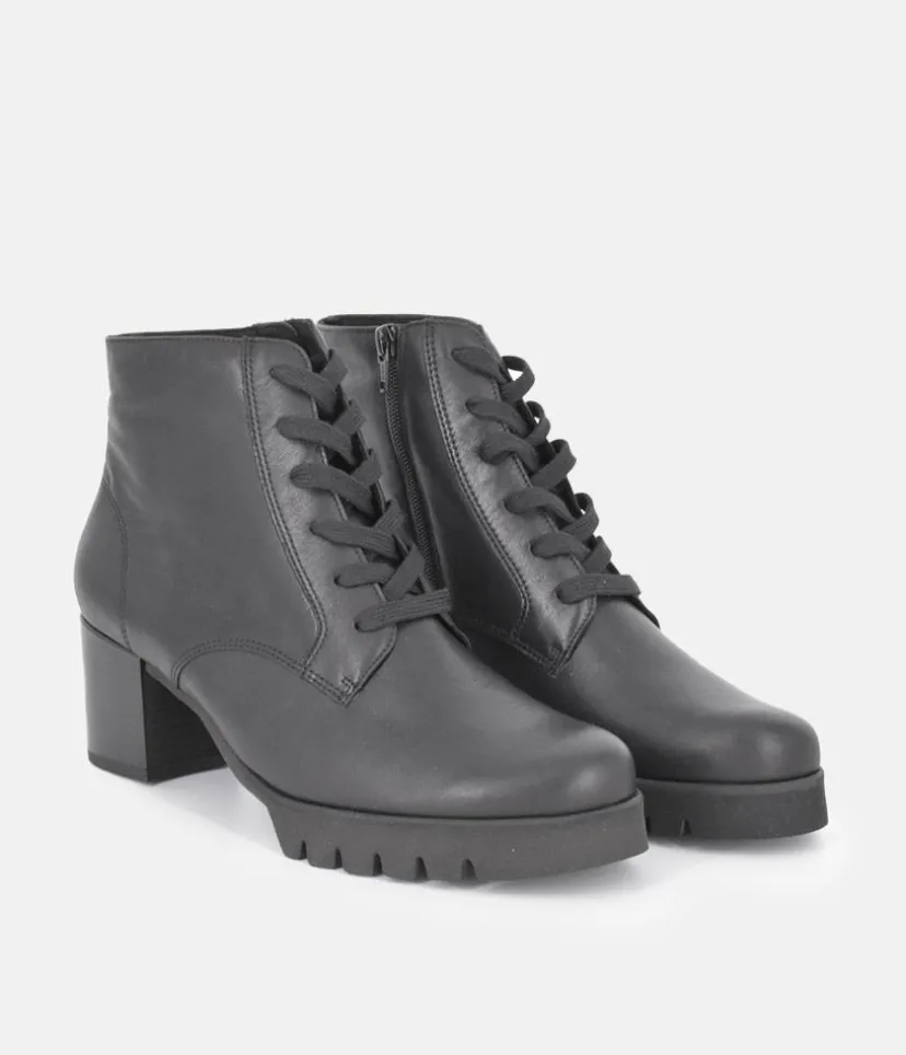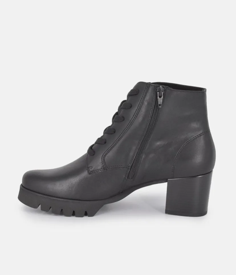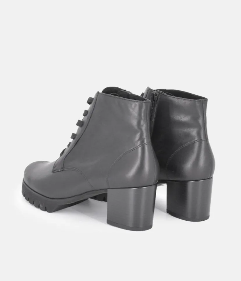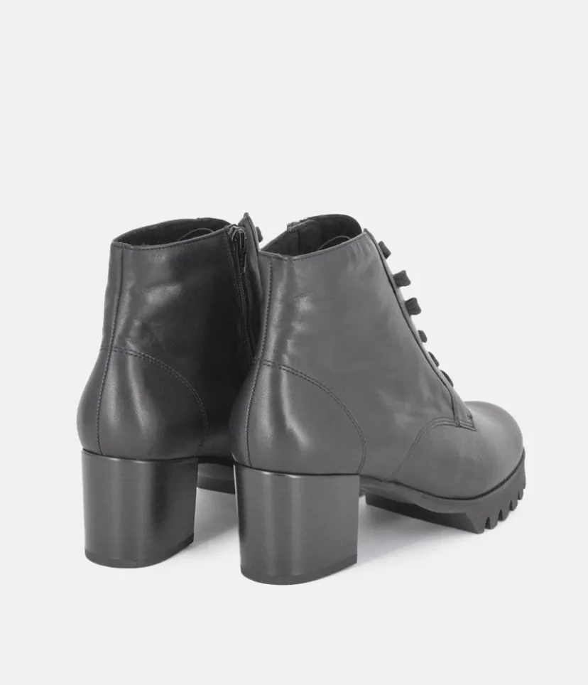 A Deluxe Block Heel Ankle Boot from Semler crafted by hand in a beautiful Black Leather. These boots are very comfortable to wear and the side zip ensures easy on and off while the wide laces and bigger eyelets ensure a Super Stylish look.