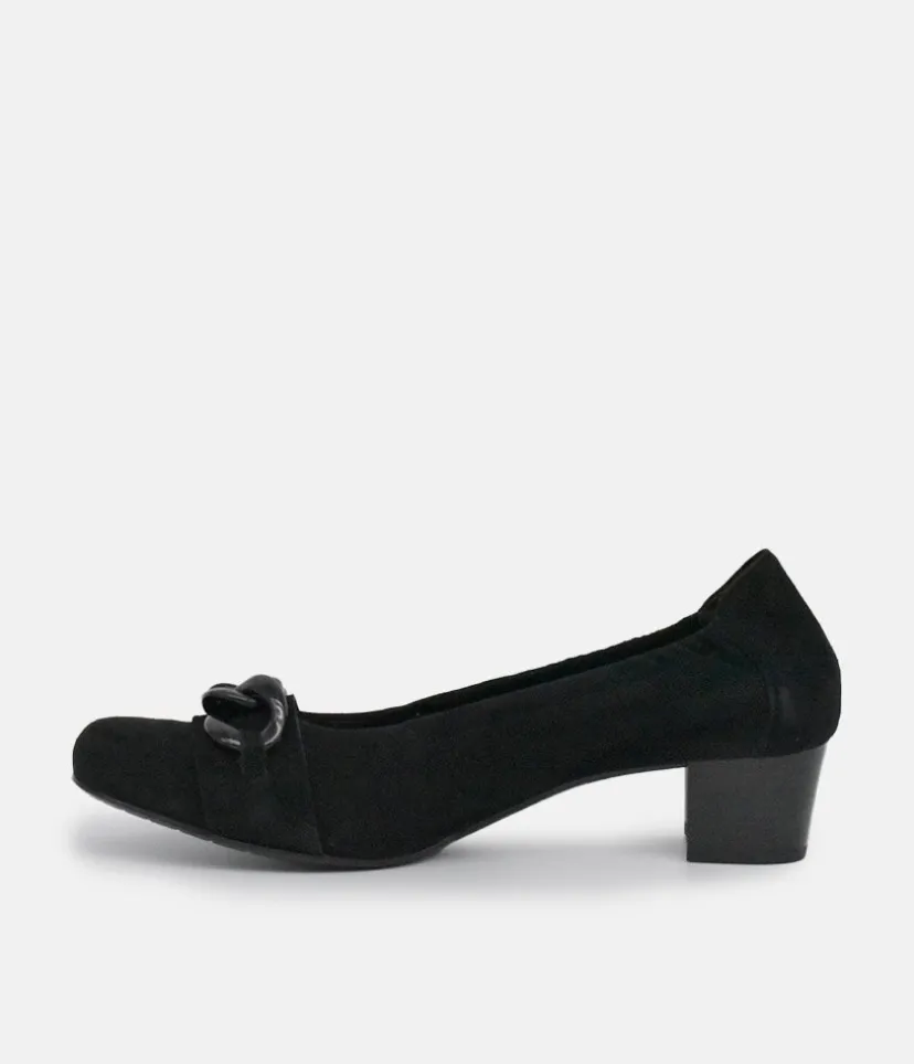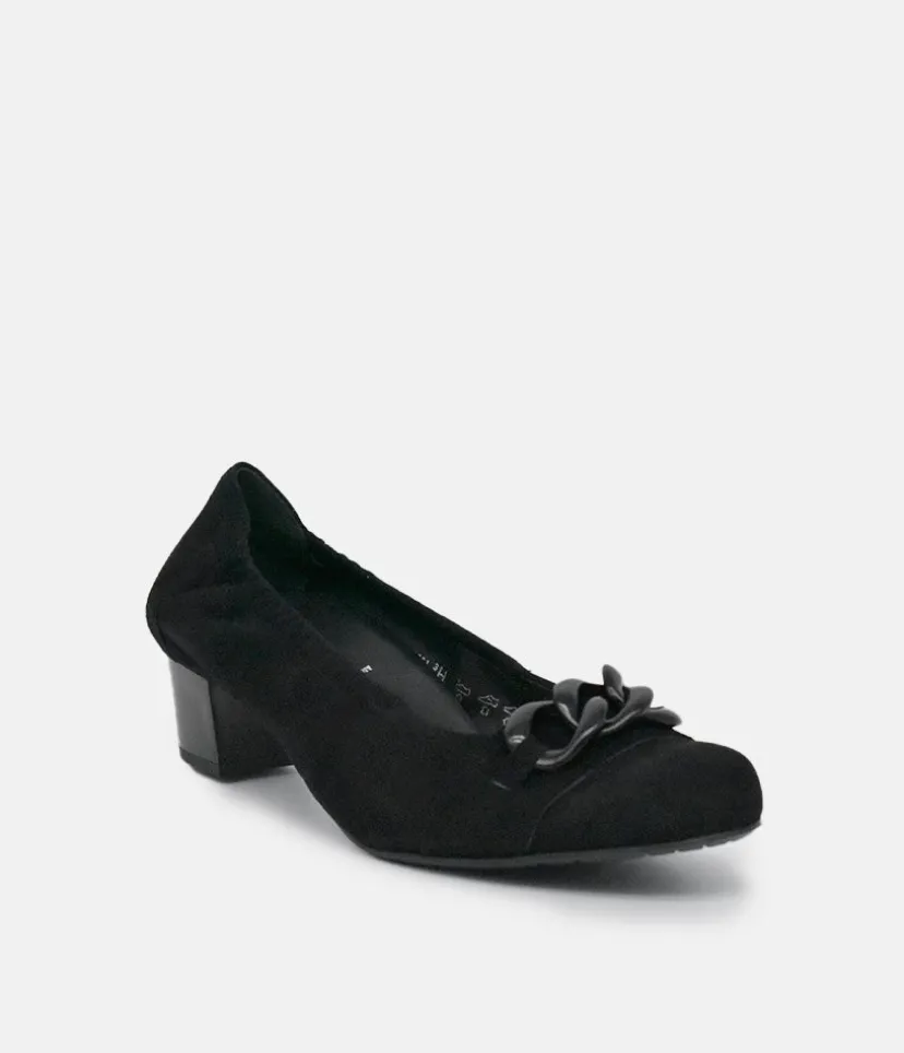 Fashionable and feminine, this is a super comfortable mid heel court shoe from Semler. This dressy style is beautifully made and includes a decorative embellishment on the upper, a removable insole and the toe box is extra deep ensures a very comfortable fit.