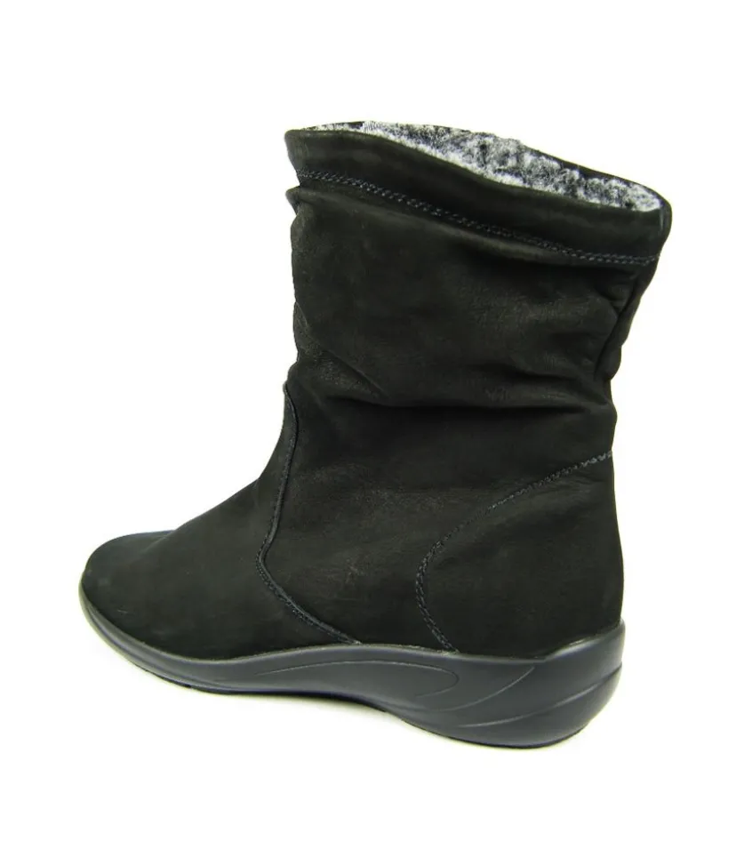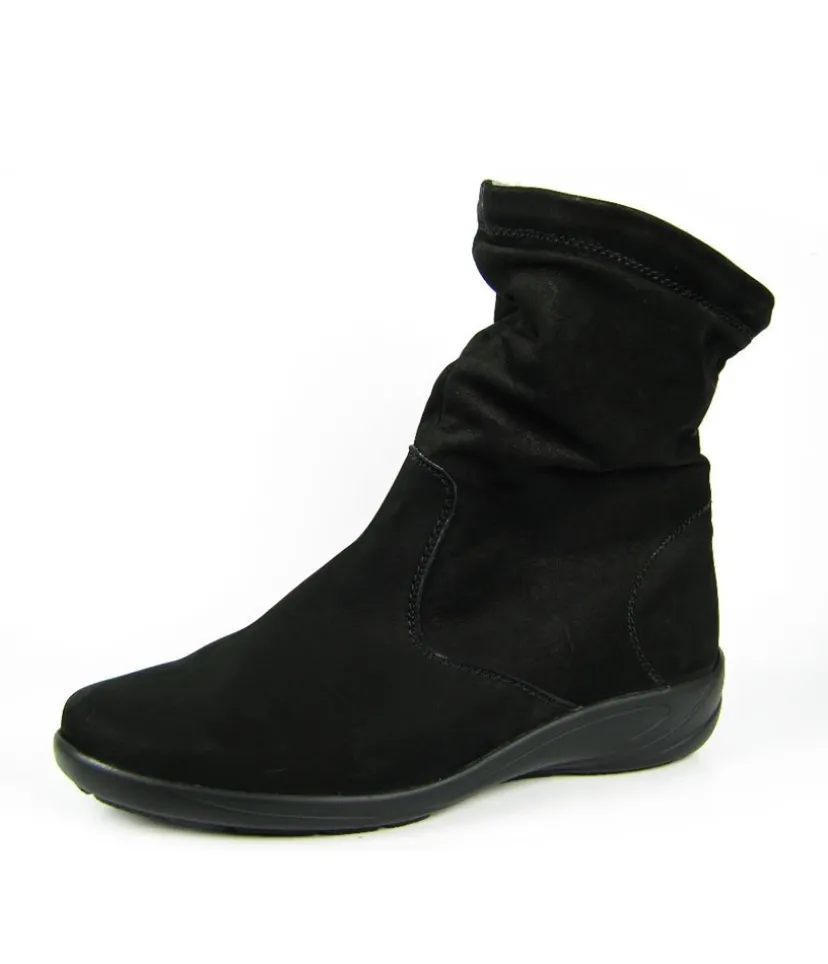 A fashionable Ankle Boot from Semler handmade in a beautiful Black Suede. The side zip ensures easy on and off and as well as looking stylish these are very comfortable to wear. You’ll want to live in these with their comfy soft lining and the removable footbed is particularly comfortable. The rubber sole with a slight wedge heel is slightly profiled and slip-resistant.