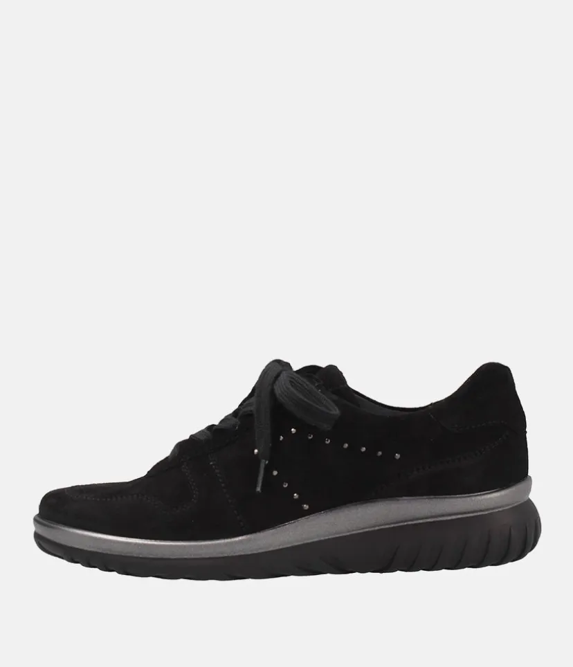 A Super on Trend Plush Sporty Shoe from Semler. Fashionable and feminine, this is a super comfortable featuring a stylish beaded pattern on the upper. The insole is removable and ensures a very comfortable fit and the extra-light air cushion sole is fashionably emphasized and is gentle on the joints and non-slip.