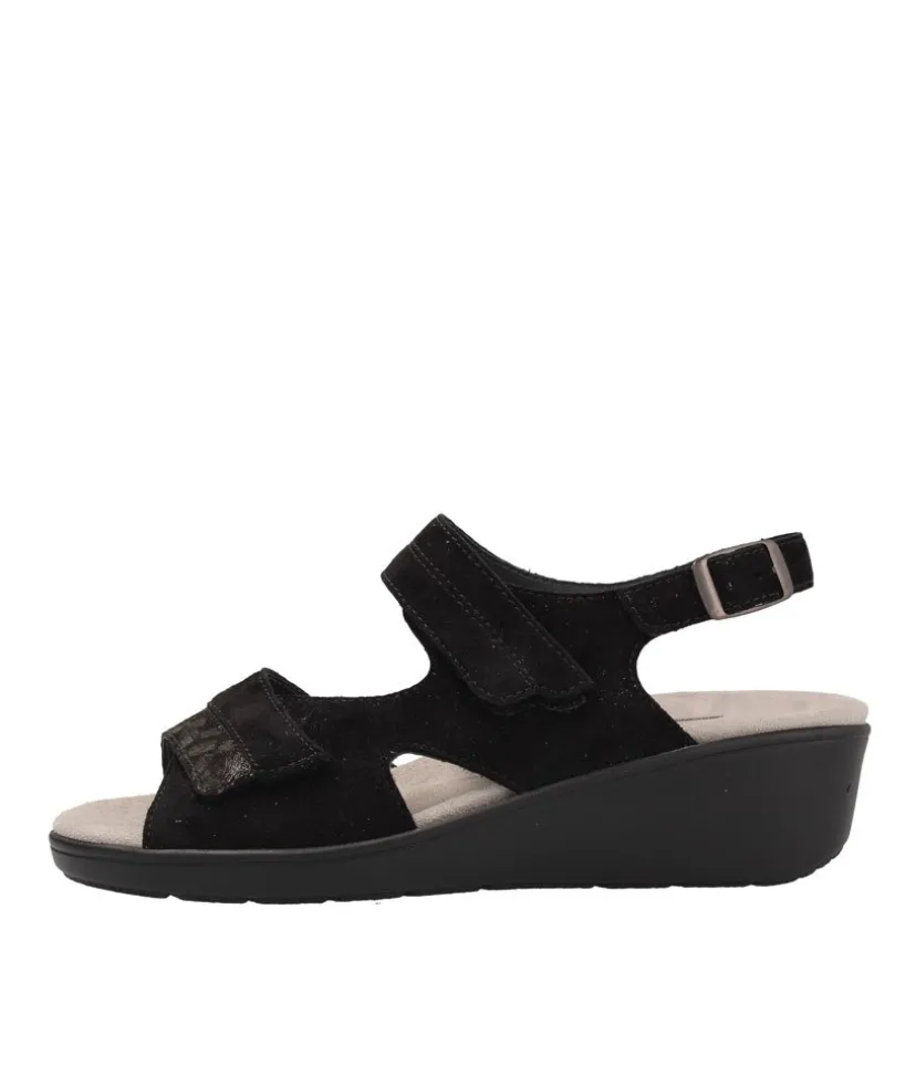 These are a Super comfortable and Stylish sandal from Semler with a wedge heel. A great choice with it’s Beautiful Soft Suede leather upper. This style has two velcro straps which means the width is adjustable. The insole can be removed if necessary.
