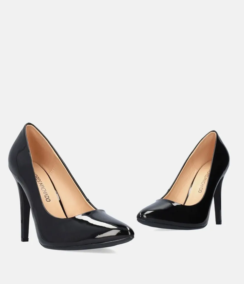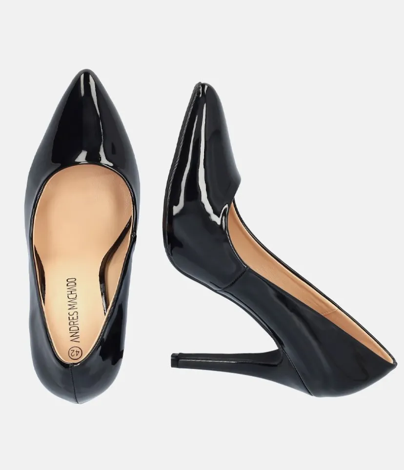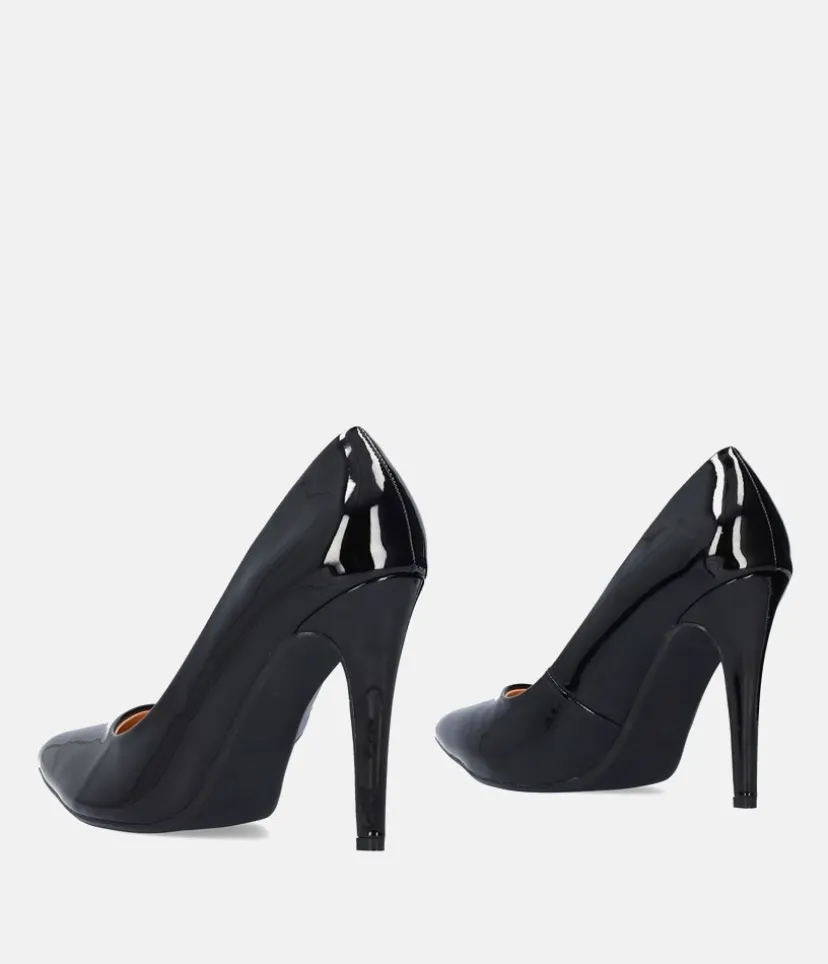 Elevate any look from 0-100 instantly with these black patent faux leather stiletto heels. These heels with their timeless elegance brilliantly combine style and sophistication. Its black patent upper features a sculpted upper that extends its lines to this iconic bold cut and sits easy atop a slender stiletto heel.