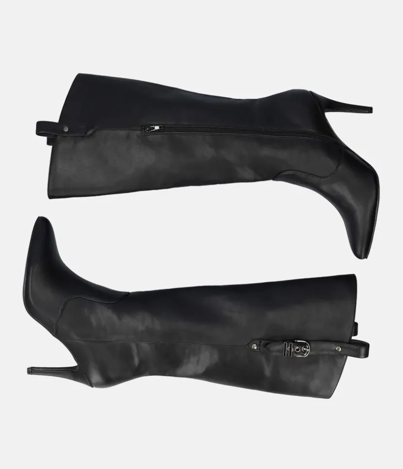 Versatile long boots with a contoured silhouette and stiletto heel which will give you an extra lift. A Classic style with stunning clean and elegant lines, these nearly knee-high boots are a sassy addition to any wardrobe.