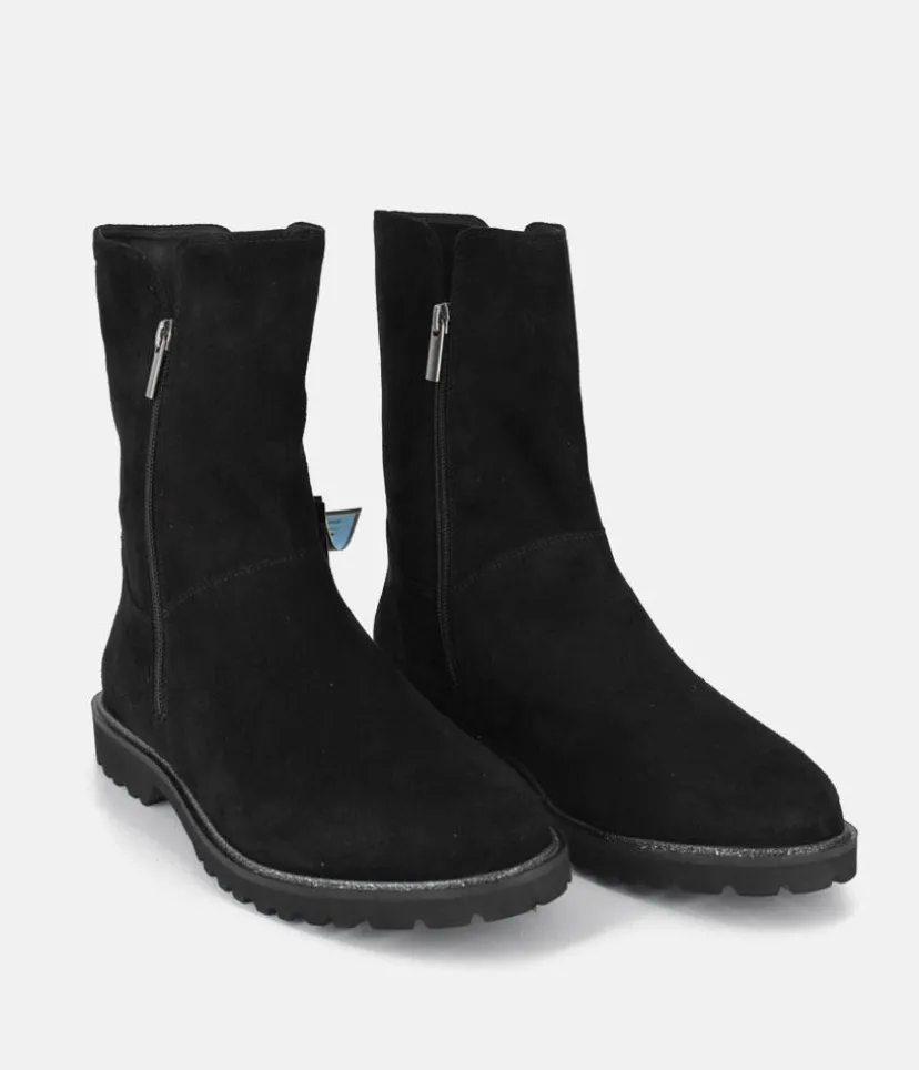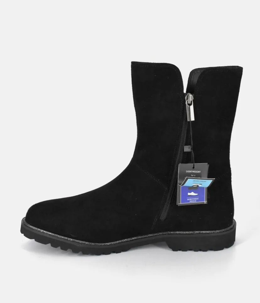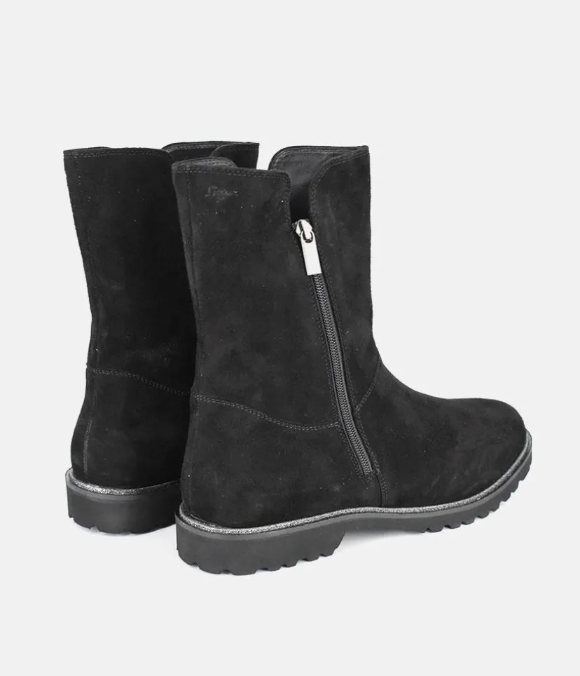 A Stylish New style by Sioux in a comfortable H extra width featuring a premium fine lamb suede leather and lined with leather and a stretch textile lining in the forefoot. This style has a removable, leather-covered insole with soft cushioning – also suitable for replacing with your own insole. The profiled, light rubber sole is finished beautifully with a fashionable glitter trim.