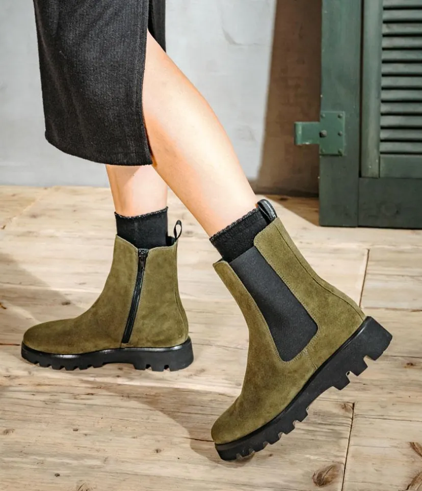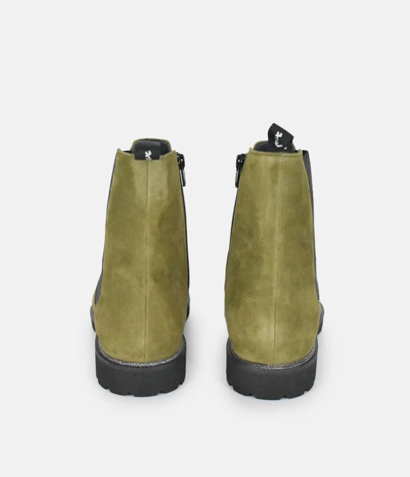 A Stylish New style by Sioux in a comfortable H extra width featuring elastic panels on the side and zip and strap on the heel. Made from fine lamb suede leather and lined with leather and a stretch textile lining in the forefoot. This style has a removable, leather-covered insole with soft cushioning – also suitable for replacing with your own insole. The profiled, light rubber sole is finished beautifully with a fashionable glitter effect.