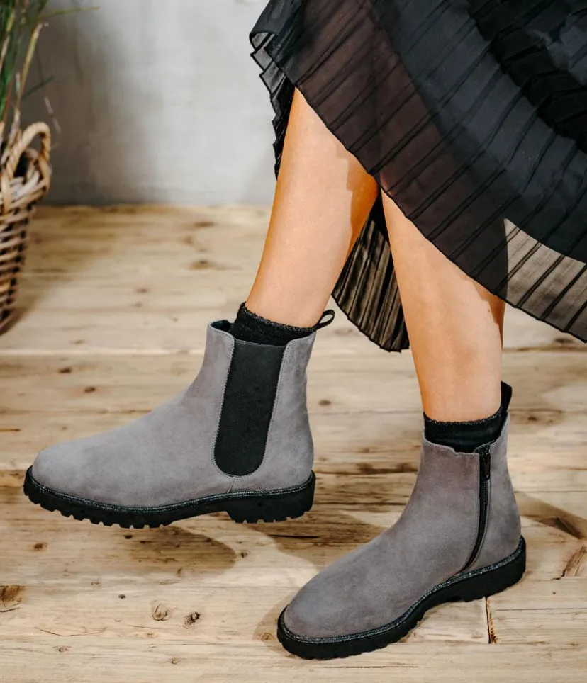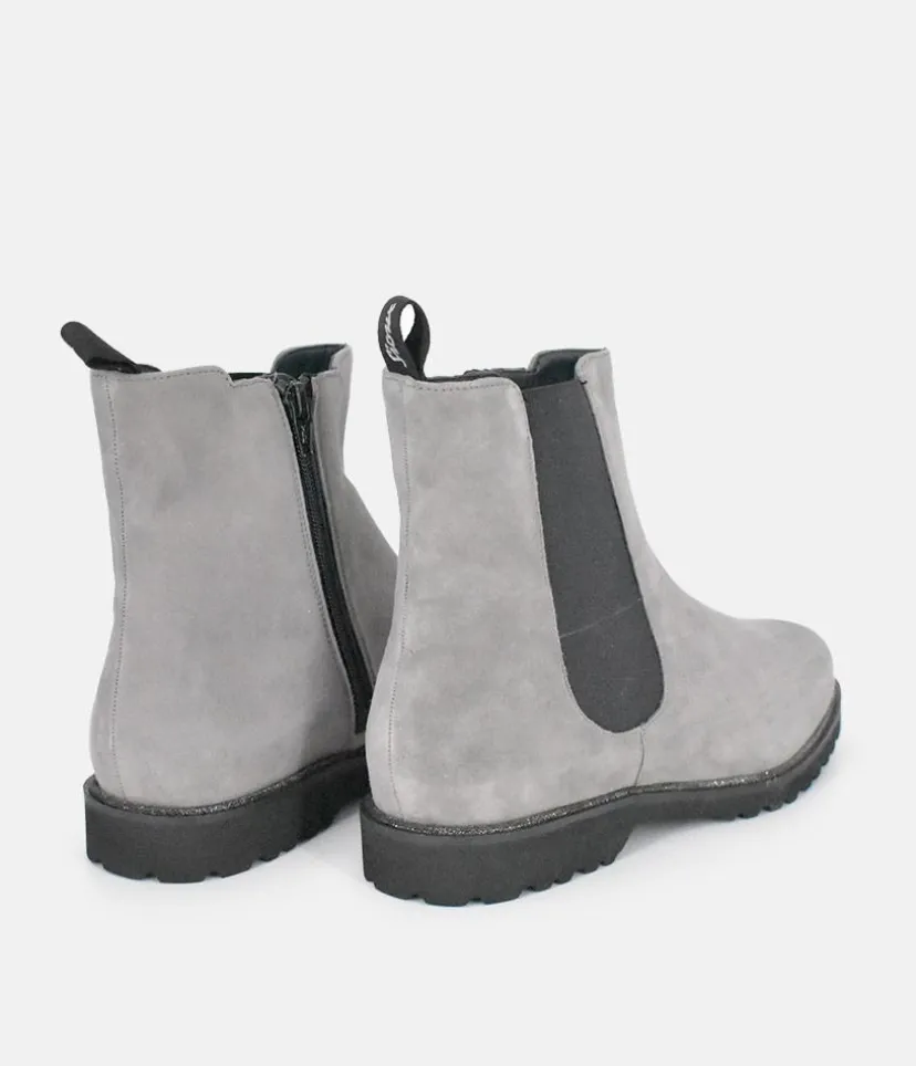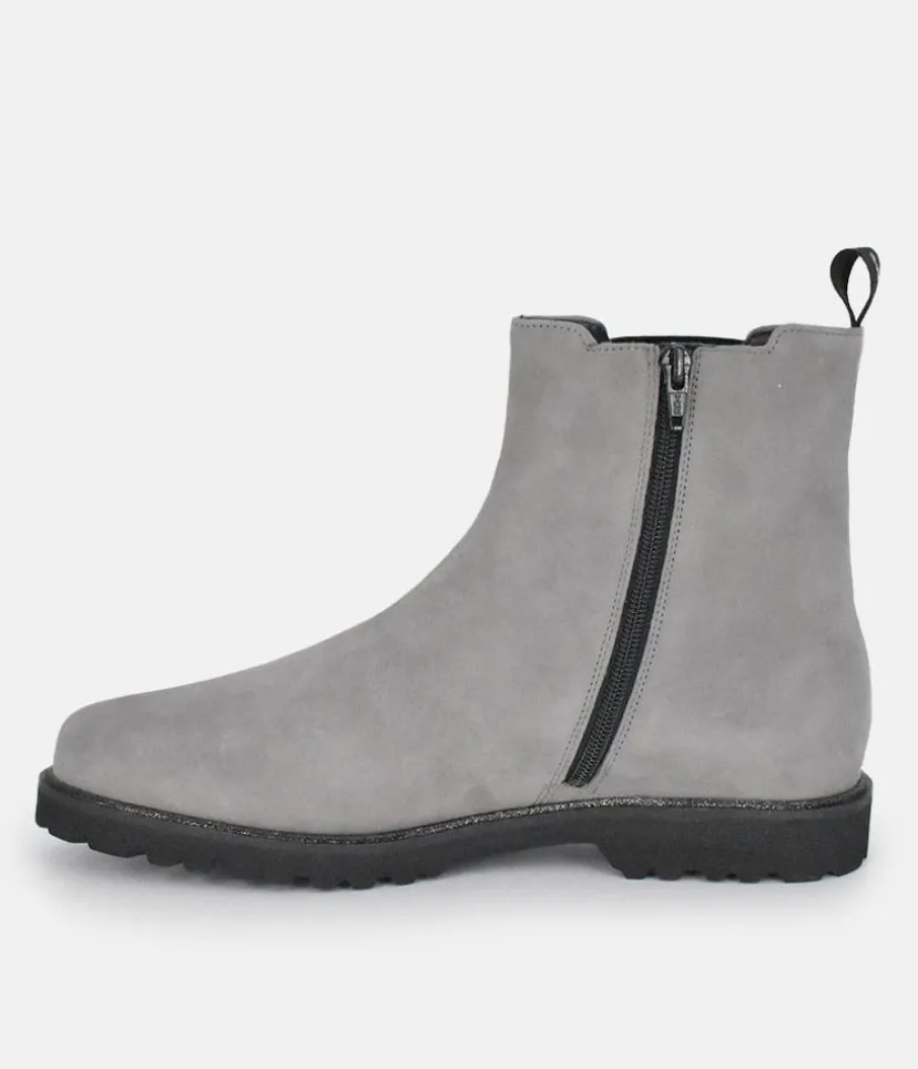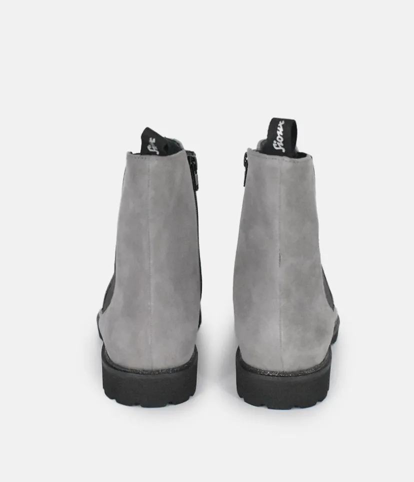 A Stylish New style by Sioux in a comfortable H extra width featuring elastic panels on the side and zip and strap on the heel. Made from fine lamb suede leather and lined with leather and a stretch textile lining in the forefoot. This style has a removable, leather-covered insole with soft cushioning – also suitable for replacing with your own insole. The profiled, light rubber sole is finished beautifully with a fashionable glitter effect.
