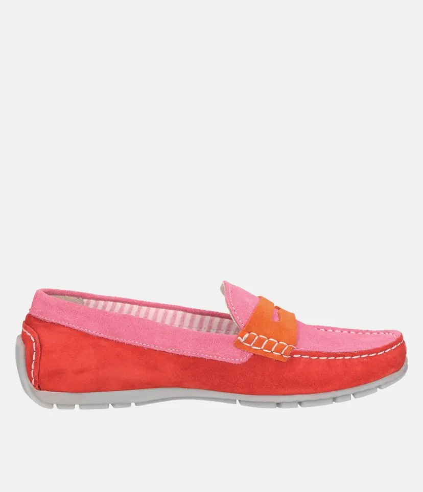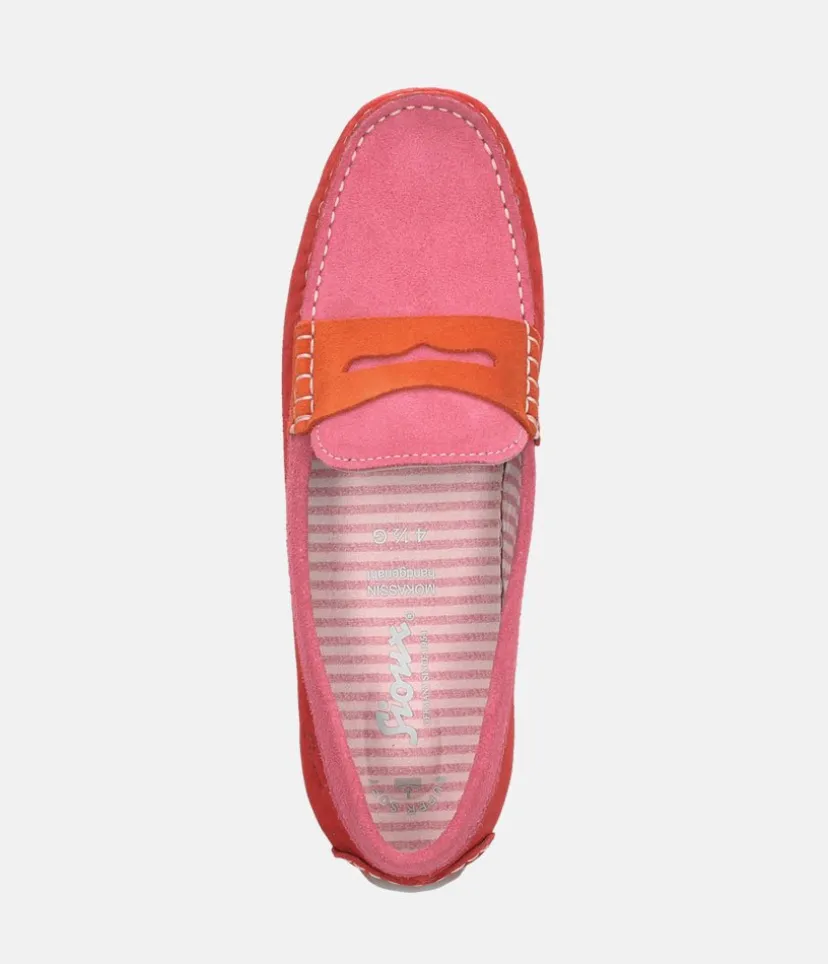 This is a Super stylish flat slip-on shoe from Sioux in a moccasin style made of elegant calf suede with an on-trend penny-loafer trim. Lined throughout with fabric and features a soft, cushioned removeable insole, a soft rubber sole, and the comfy G width ensures a roomy fit at the toes.