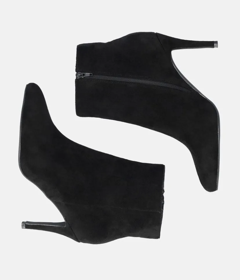 Add a little height with these Stiletto Heel Booties from Andres Machado. Featuring a pointy toe and a beautiful sleek faux leather on the upper.
