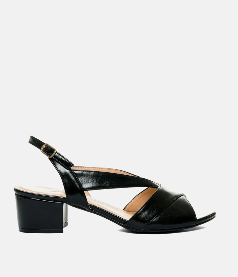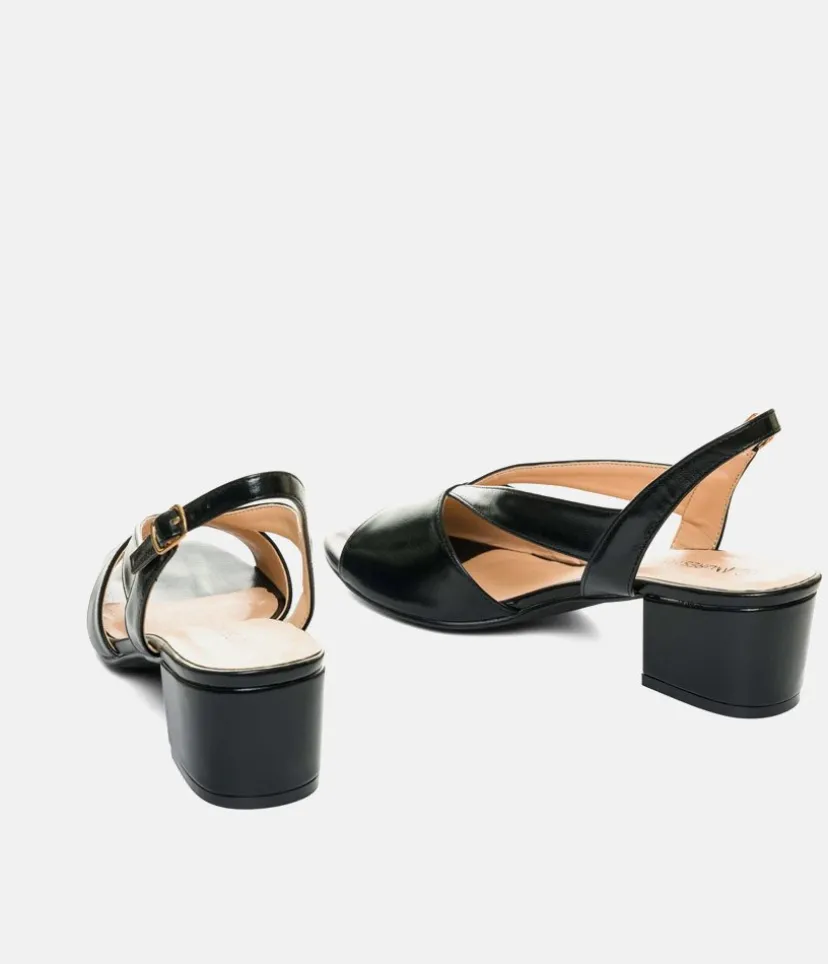These round toe Black Patent Sandals with a V cut strap and ankle strap are a stylish choice. Great for any occasion.