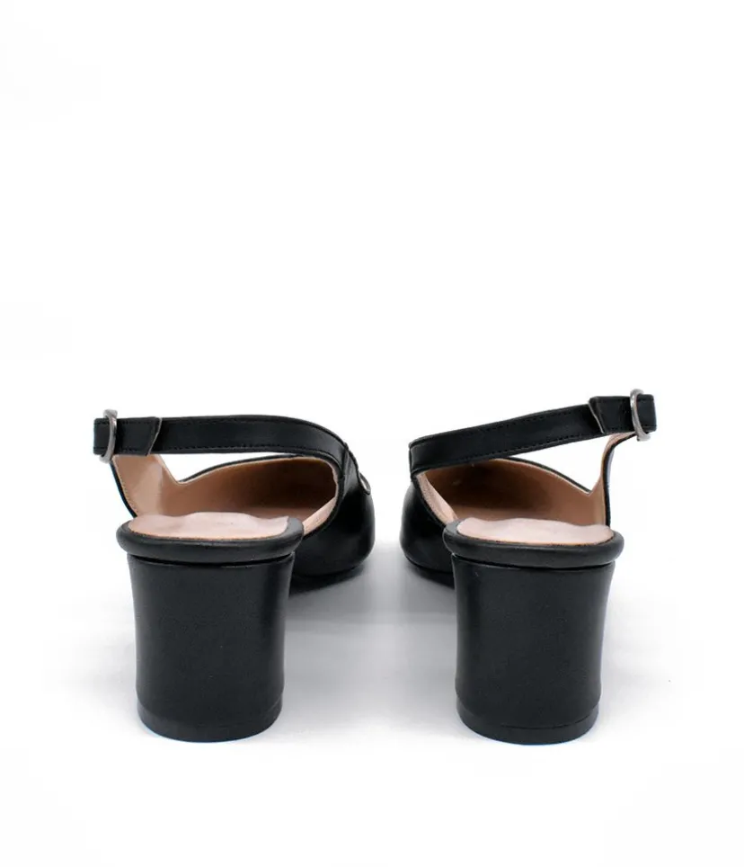 These Stylish slingback heels in a classic black with a sturdy block heel are great for any occasion.