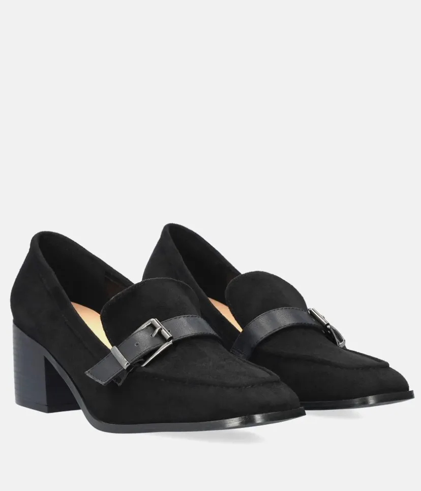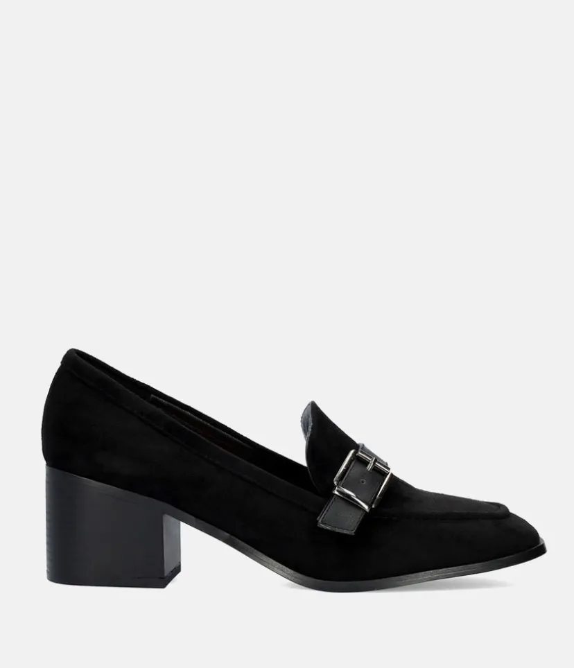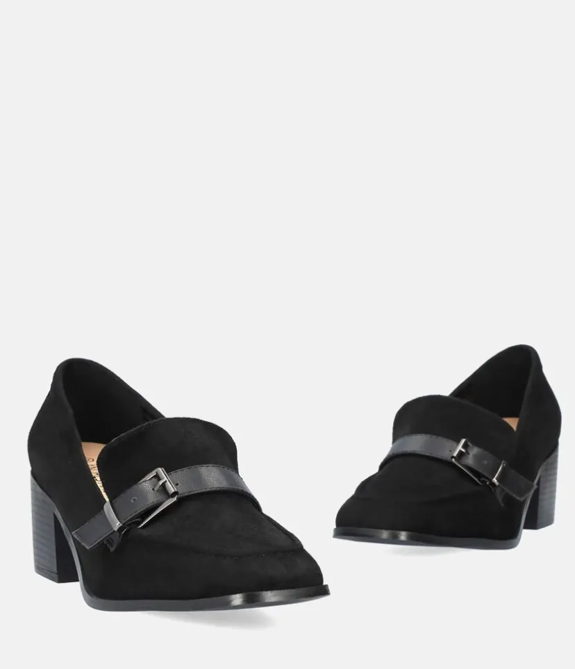 Upgrade your smart shoe collection with these must-have block heels. They feature a strap embellishment, almond toe, mid block heel and are complete in a suede look finish. Perfect to pair with trousers and a button up shirt for a classic casual style.