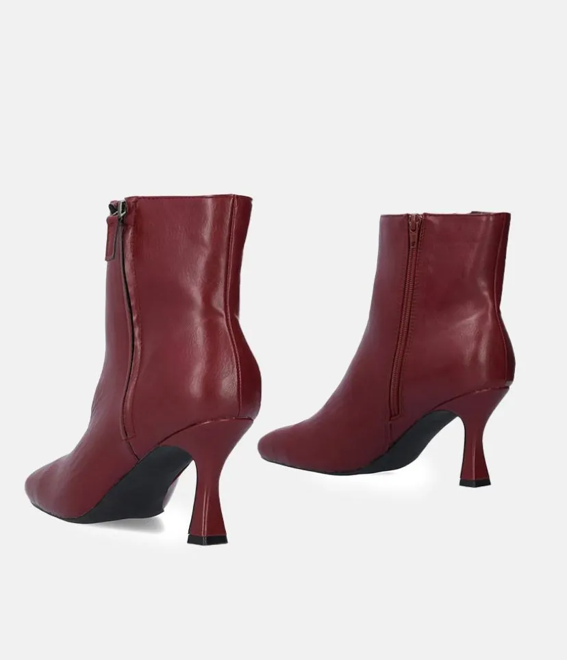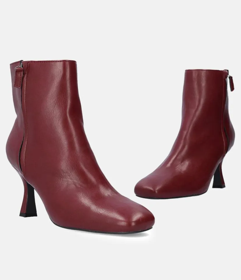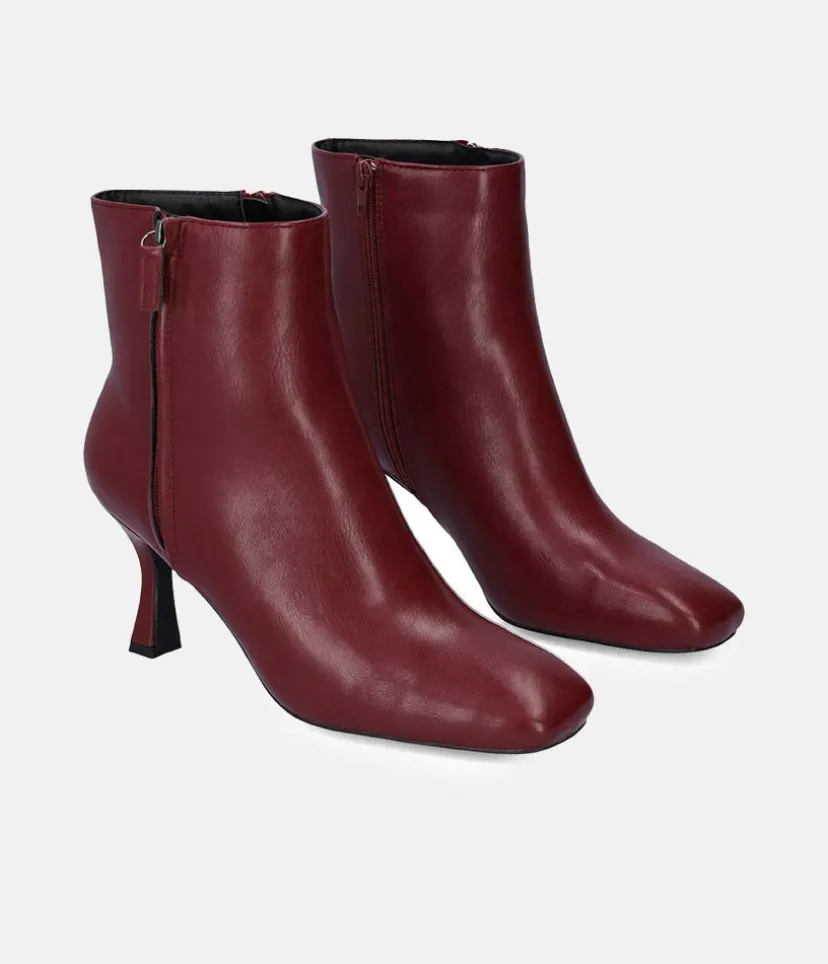 A Fashionable ankle bootie made in black faux leather, featuring a Square toe and side zipper. The modern stiletto heel is just over 3 inchs and will give you the perfect lift this season.
