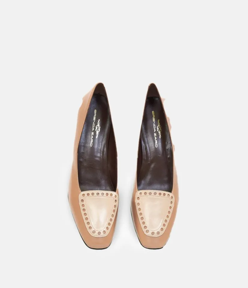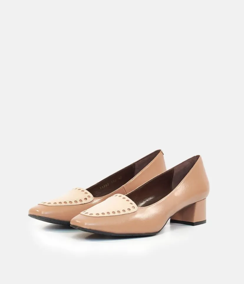 A Classic Block Heel style crafted in Leather with leather lining and mid height heel.