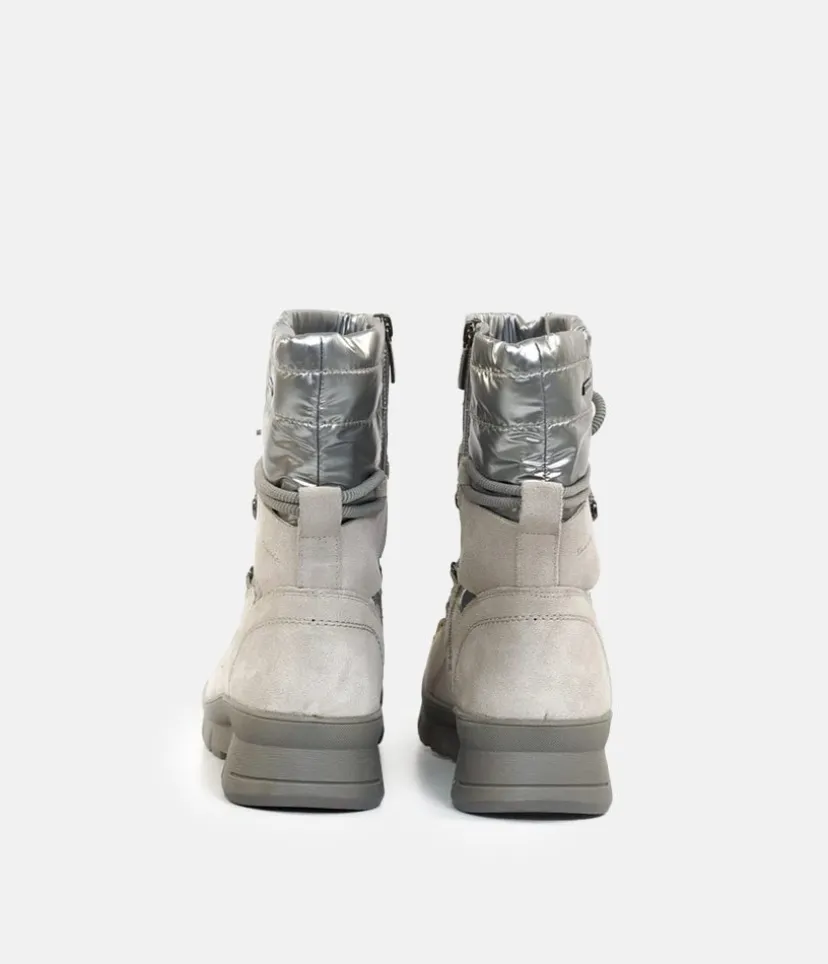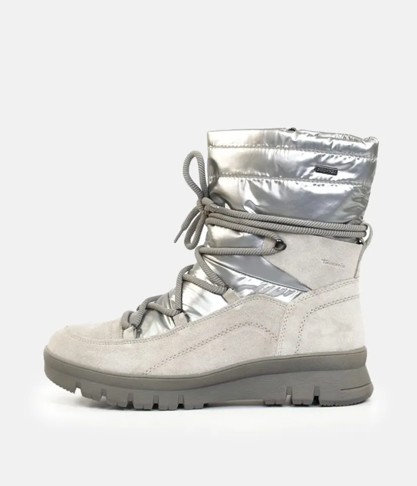 A stylish yet practical Winter boot from Tamaris, featuring a mix of Leather and water repellant uppers. With a fashionable combination upper, warm lining and a handy side zip for quick and easy on and off and complete with a cushioned removable insole.