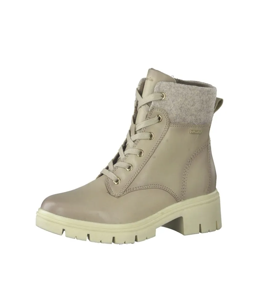 This is a Fashionable versatile Ankle boot from Tamaris with handstitched Leather upper, with a removable insole the flexible sole relieves the foot with every step. These Ankle boots in Brown impress with their design and are super comfortable to wear. The DuoTex material keeps feet warm and dry, and helps keep water out and absorbs moisture inside.