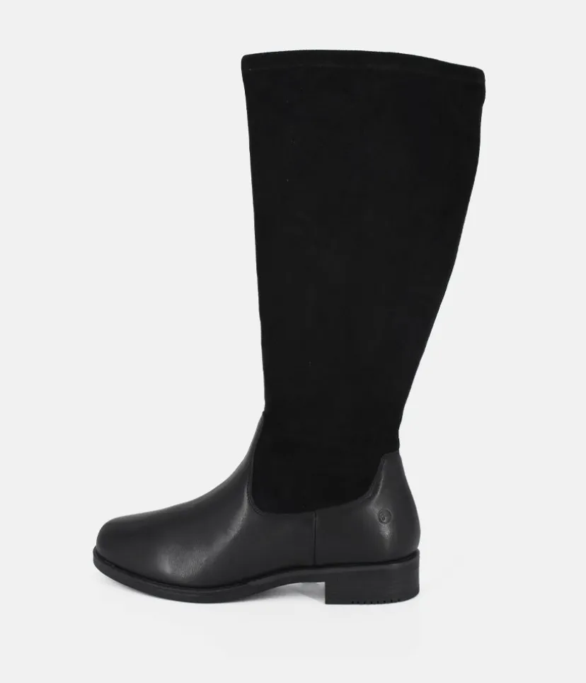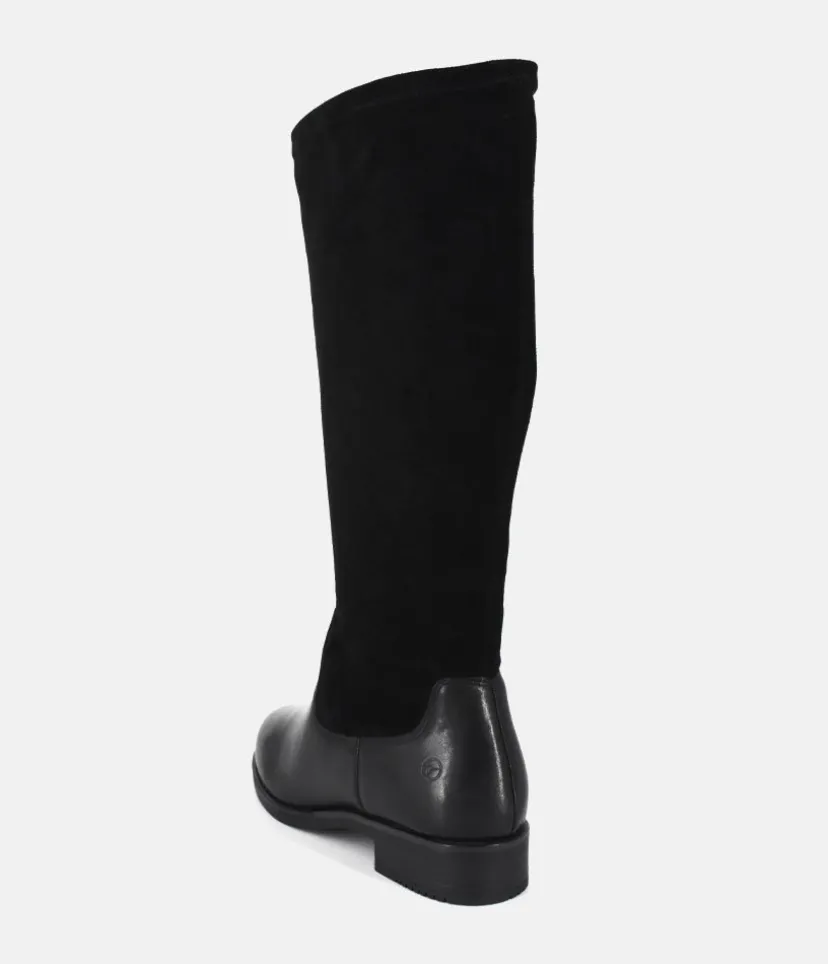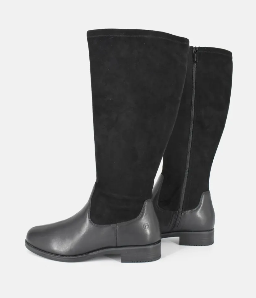 These Long boots are a Stylish option from Tamaris and will look great with any outfit. Finished in a Plush Suede and leather upper, full length side zip and and sitting atop a small block heel.