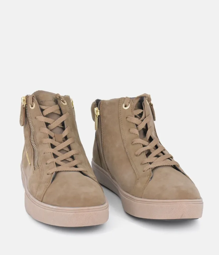 These ankle booties are a Stylish, casual option from Tamaris and will look great with your new season wardrobe. Finished in a classic Taupe Suede with contrasting gold trim and sitting atop a comfortable chunky sole.