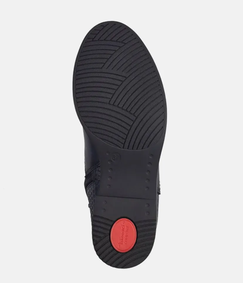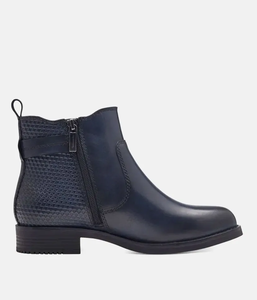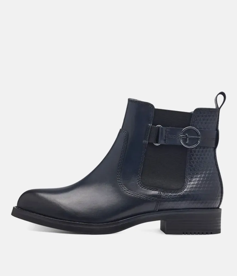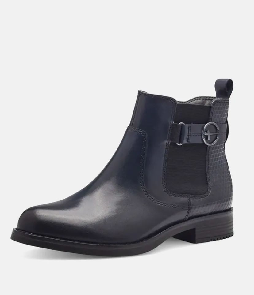 These ankle boots are a Stylish option from Tamaris and will look great with any outfit. Finished in a classic Navy leather upper with buckle detail and sitting atop a small block heel. Featuring elasticated side gussets and in classic chelsea style is complete with a handy pull tab to make the boot easier to get on and off.