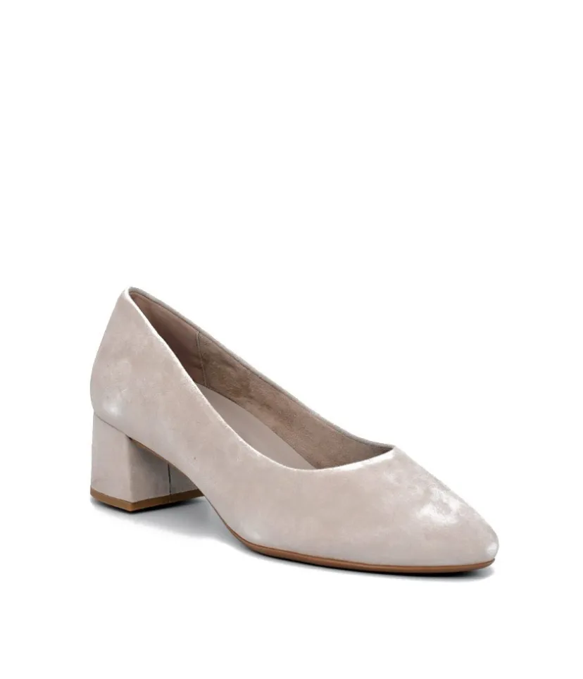 A Classic Block Heel style from Tamaris in a versatile crafted in Taupe Suede with leather lining and mid height heel.