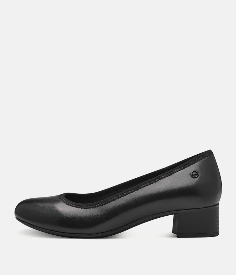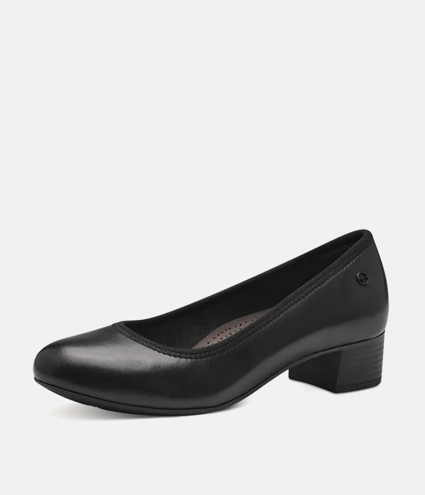 Tamaris Versatile Black Leather Wide Fit Court Shoes