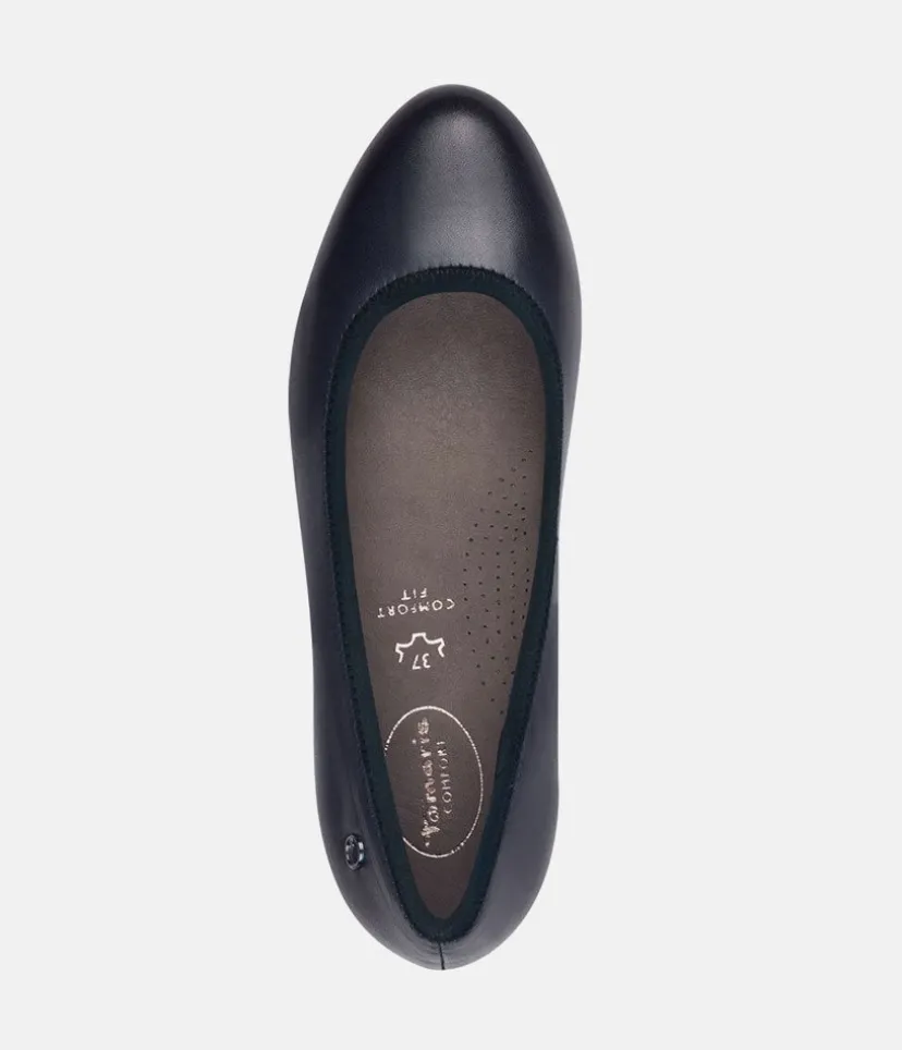 Tamaris Versatile Wide Fit Navy Leather Court Shoes