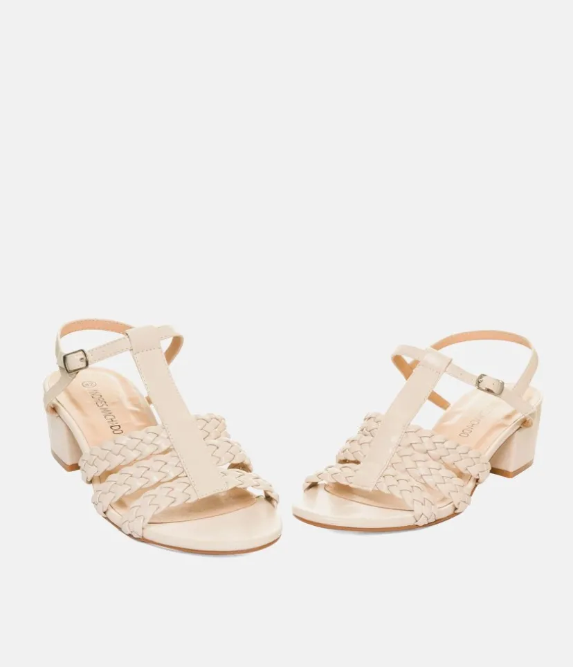 These low block heel t-bar Sandals with an ankle strap are a stylish choice. Featuring a braided design on the upper. Great for just about any occasion.