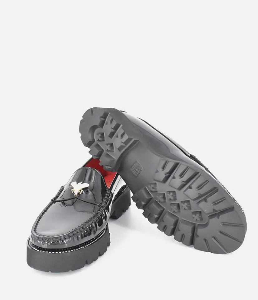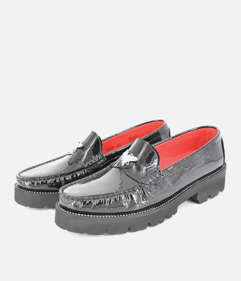 This style features a chunky sole with a Beautiful Patent Leather upper and finished to perfection with a pretty embellishment. These loafers by VITTORIA MENGONI are exquisitely handmade by Italian Craftsman, using only top quality Italian leathers and hand adorned accessories. Super comfortable to wear, with their super soft leather and padded insole which ensure all day comfort.
