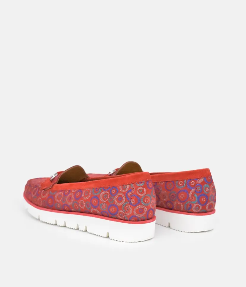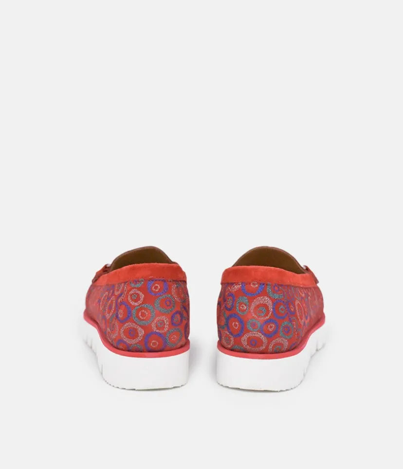 This style features a chunky low wedge sole with a beautifully printed leather upper and finished to perfection with a buckle embellishment. These loafers by VITTORIA MENGONI are exquisitely handmade by Italian Craftsman, using only top quality Italian leathers and hand adorned accessories. Super comfortable to wear, with their super soft leather and padded insole which ensure all day comfort.