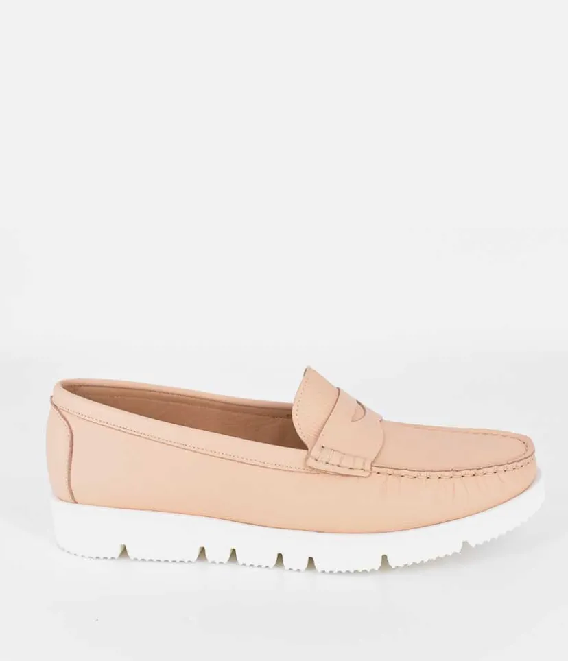 This style features a chunky white sole with a Beautifully Soft contrasting Beige Leather upper. These loafers by VITTORIA MENGONI are exquisitely handmade by Italian Craftsman, using only top quality Italian leathers. Super comfortable to wear, with their super soft leather and padded insole which ensure all day comfort.