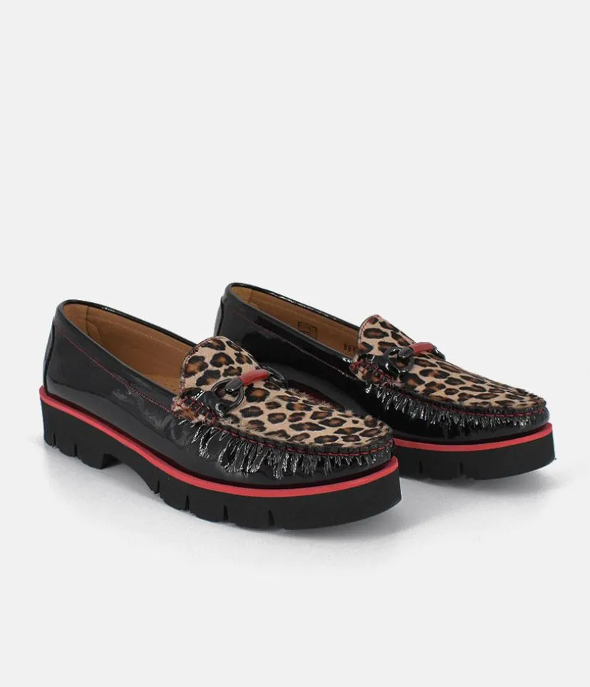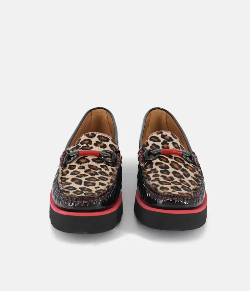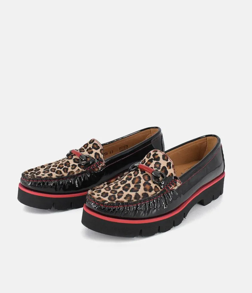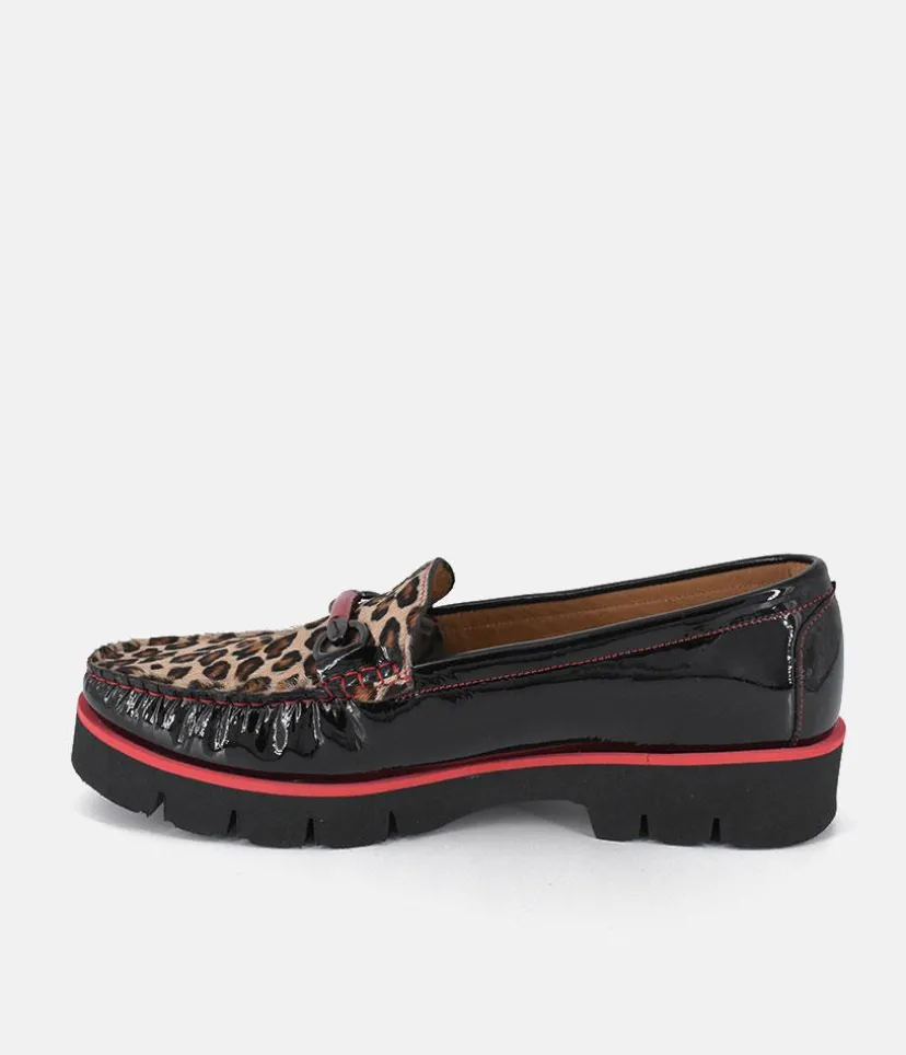 This style features a chunky sole with a beautiful combination of Patent leather upper and finished to perfection with a contrasting red and leopard design. These loafers by VITTORIA MENGONI are exquisitely handmade by Italian Craftsman, using only top quality Italian leathers and hand adorned accessories. Super comfortable to wear, with their super soft leather and padded insole which ensure all day comfort.