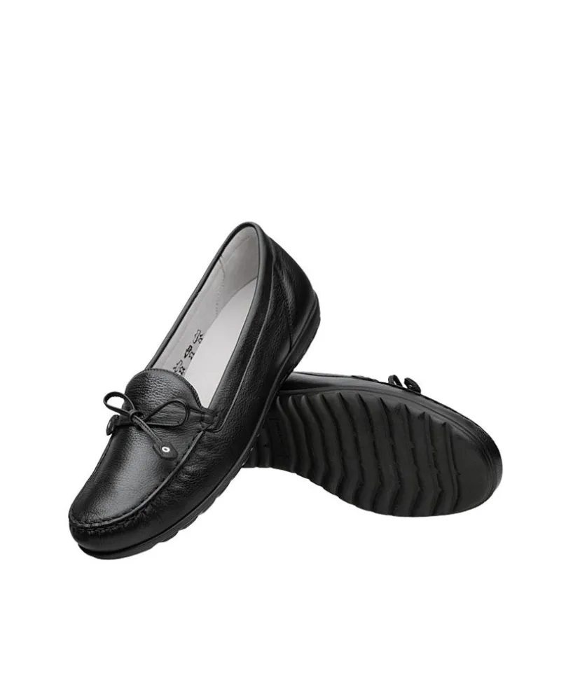 Part of our German Wide Fitting Orthopedic Collection. These slip on Black leather loafers with dressy bow detail are amazingly comfortable and great for everyday wear. This Shoe possesses a super light air cushioned sole, with a 20-35mm height heel and removable insoles.