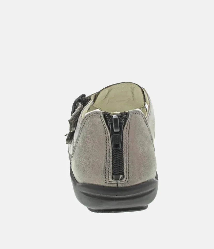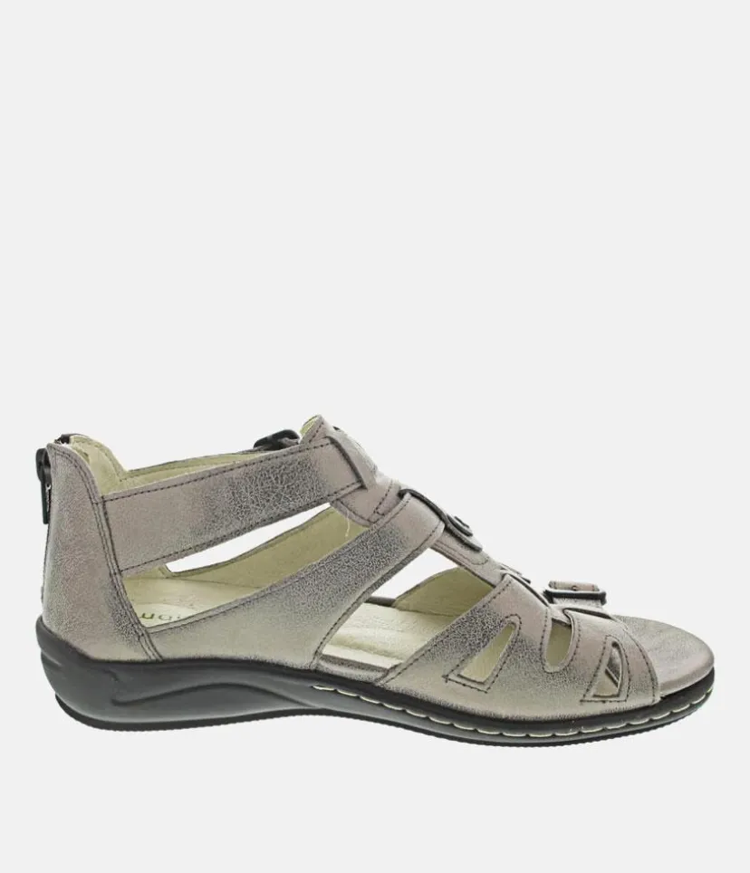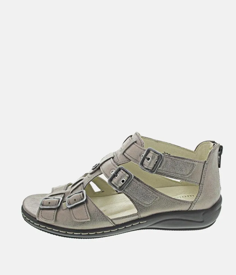 Part of our German wide fitting Collection. This Metallic Gold Leather Sandal from Waldlaufer with closed heel and velcro straps is extremely comfortable. This Shoe possesses a super light air cushioned sole, with a 35mm height heel.