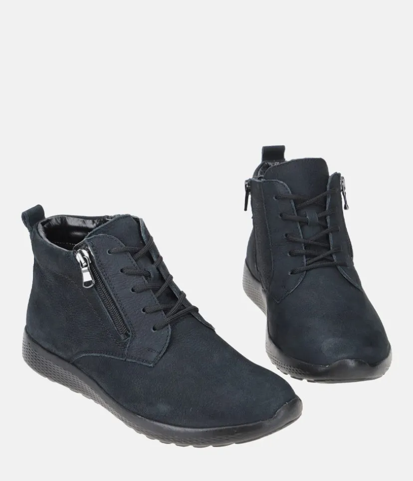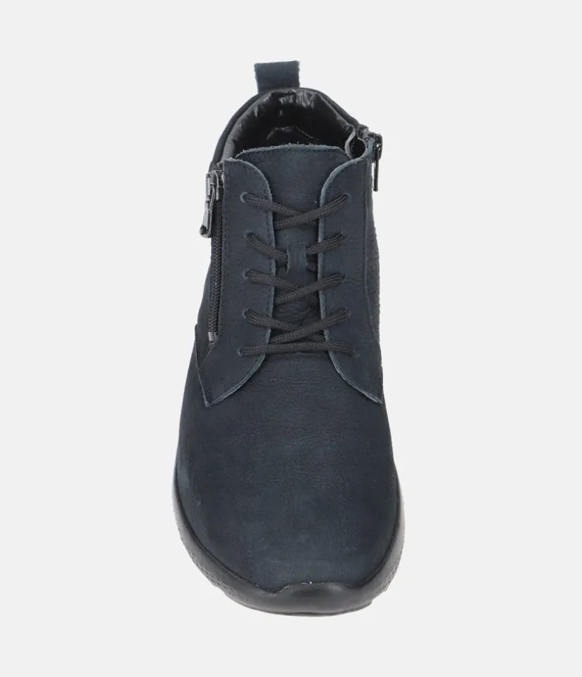 Make a statement with these Stylish Navy leather ankle boots. A slight wedge heel, cushioned insole and full leather lining ensure all-day comfort. A versatile style, great to pair with almost any outfit.