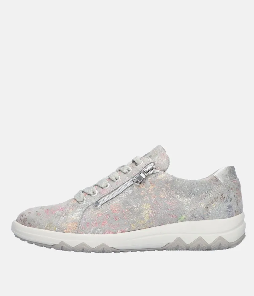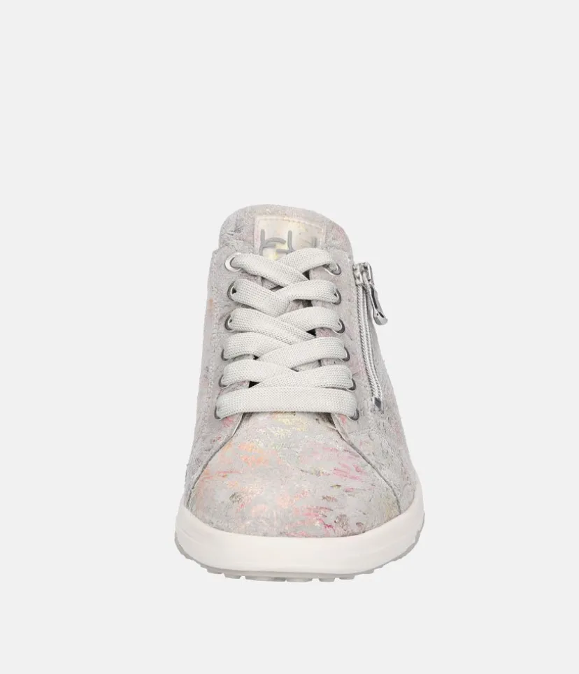 Crafted from premium leather in a Pretty Gold Pattern, this NEW sneaker style from Waldlaufer offers a breathable and lightweight fit, keeping your feet cool and comfortable throughout the day. The wide-width design provides extra room, while the padded collar ensures gentle ankle support and the lace-up design has a convenient side zip closure, allowing for easy on and off without compromising on style. The removable padded insole has been incorporated to cushion every step and also perfect for accommodating custom orthotics.