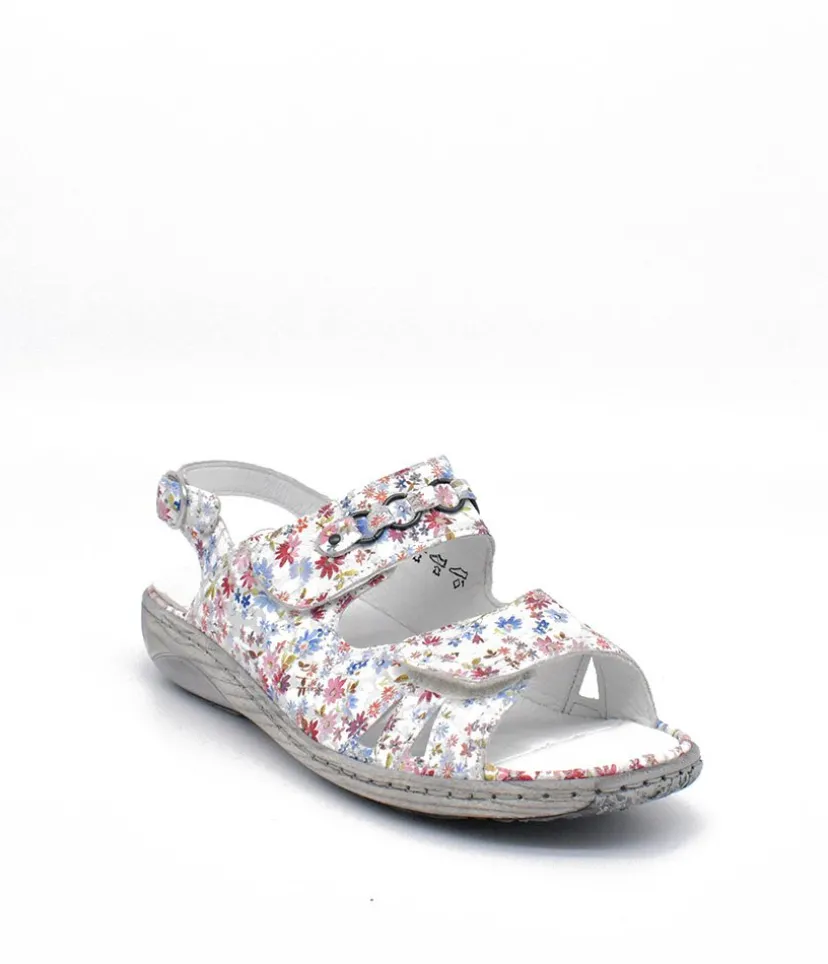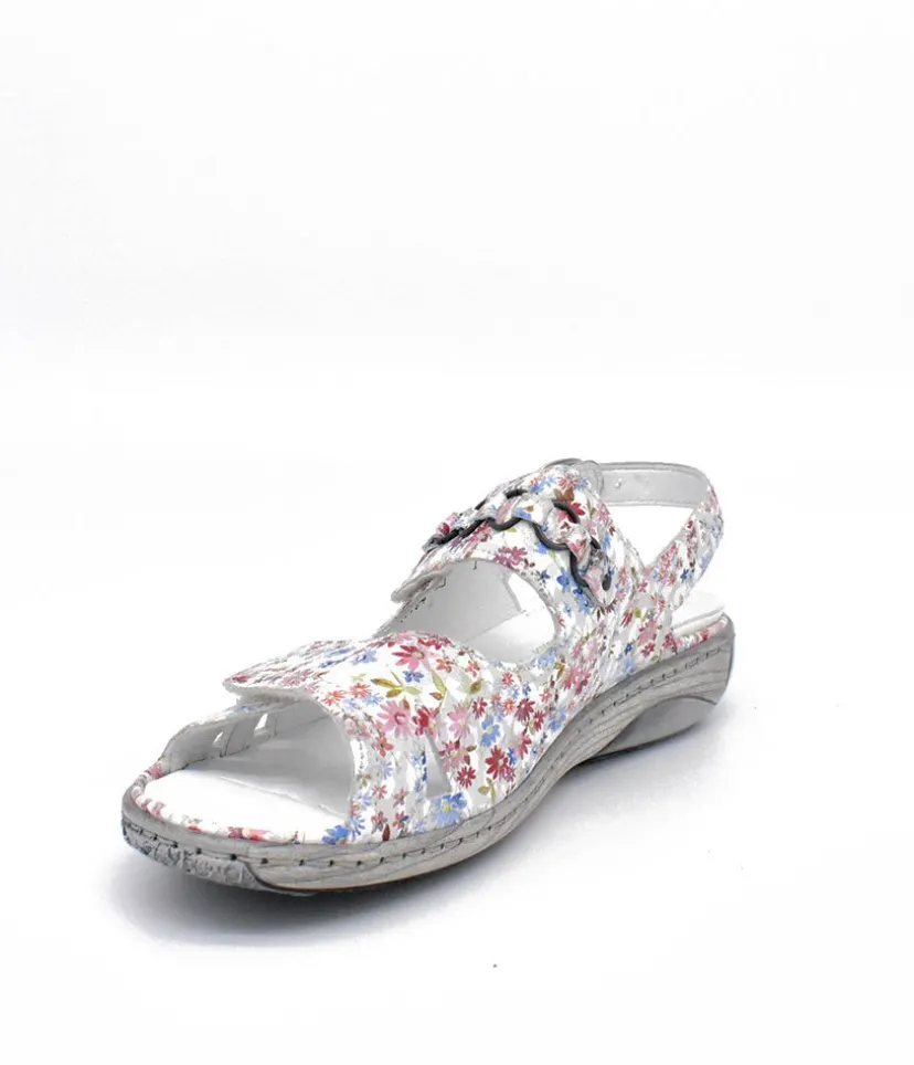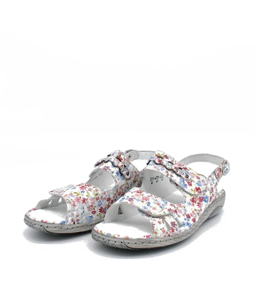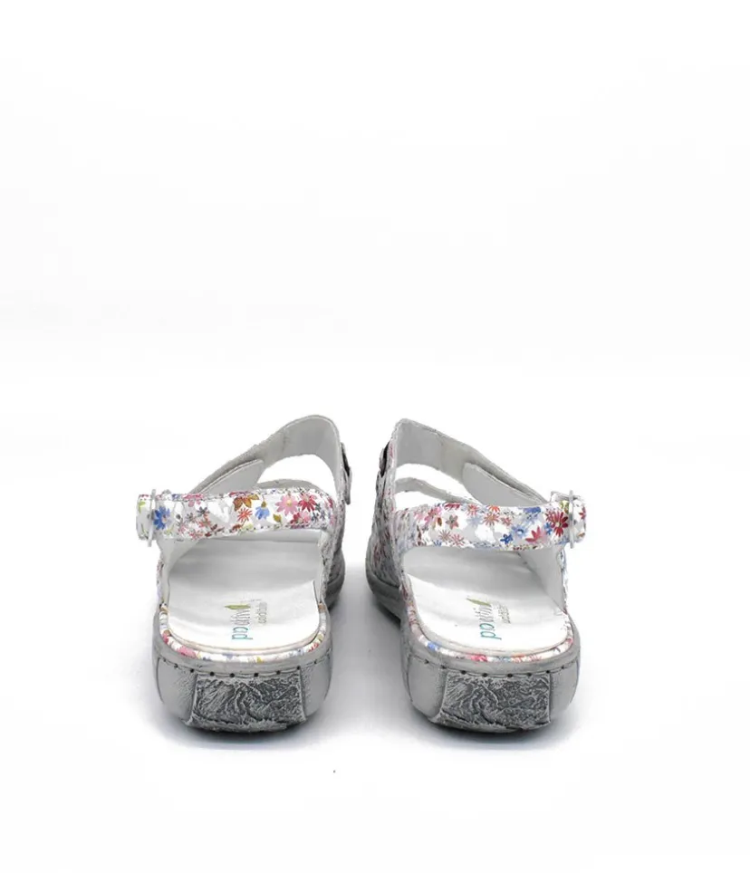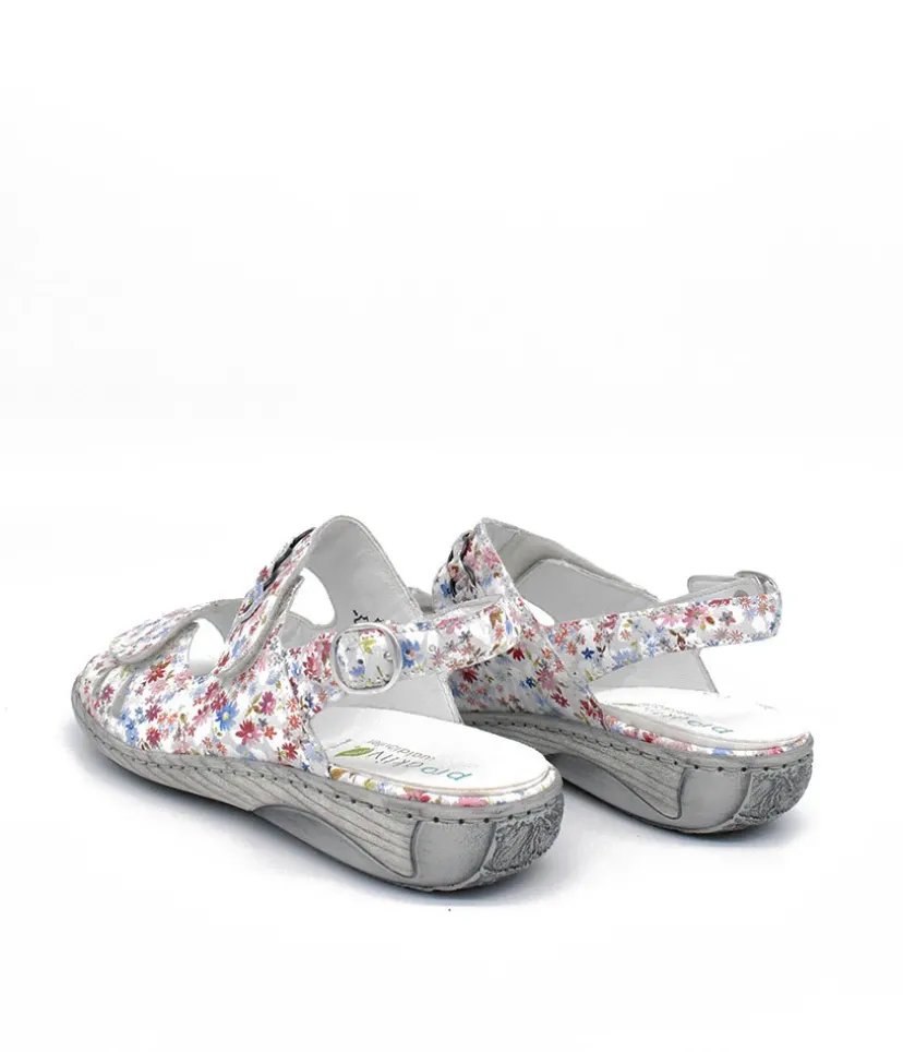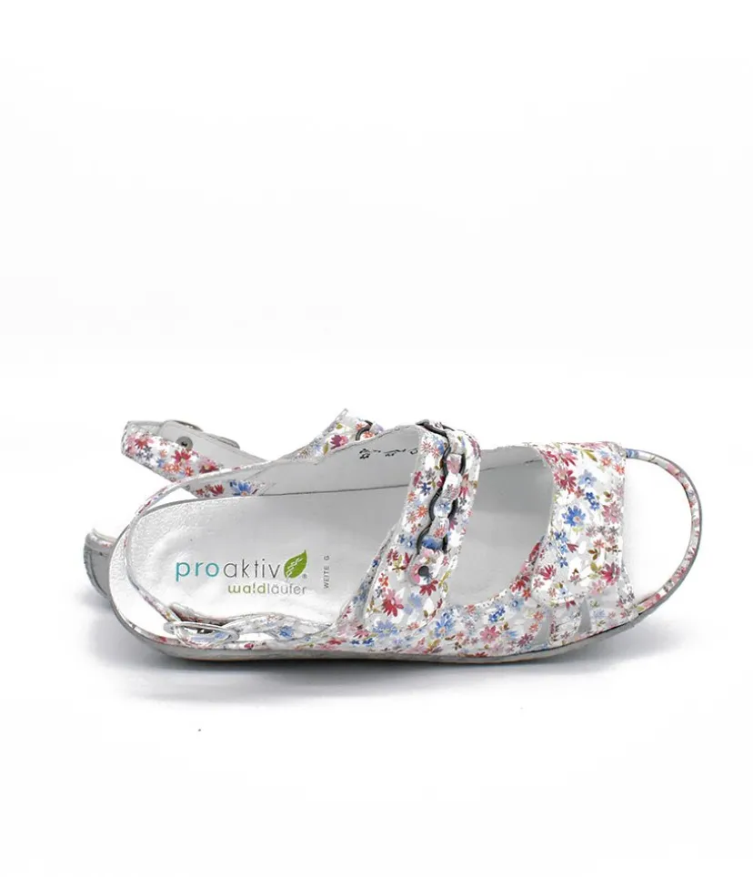 Part of our Waldlaufer wide fitting Collection. This is a pretty Floral sandal with detailing on the front strap. Double Velcro straps and buckle at the ankle allows for easy on and off and enables this to fit all widths. This sandal is so versatile with leather upper, leather lining and rubber sole with removable footbed.