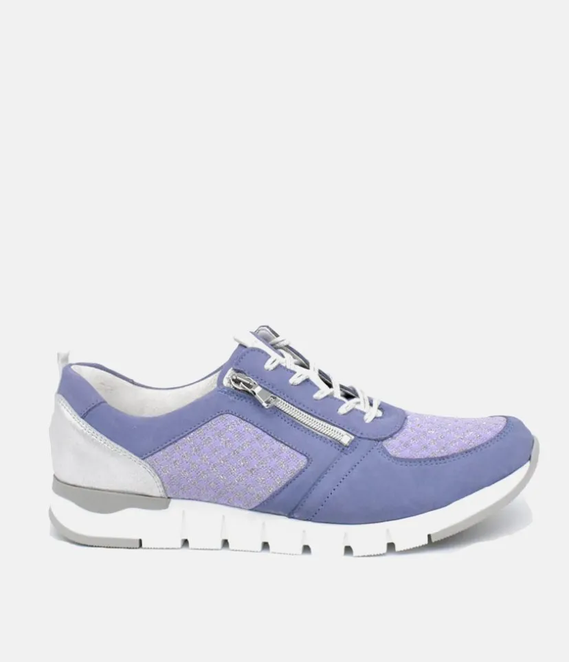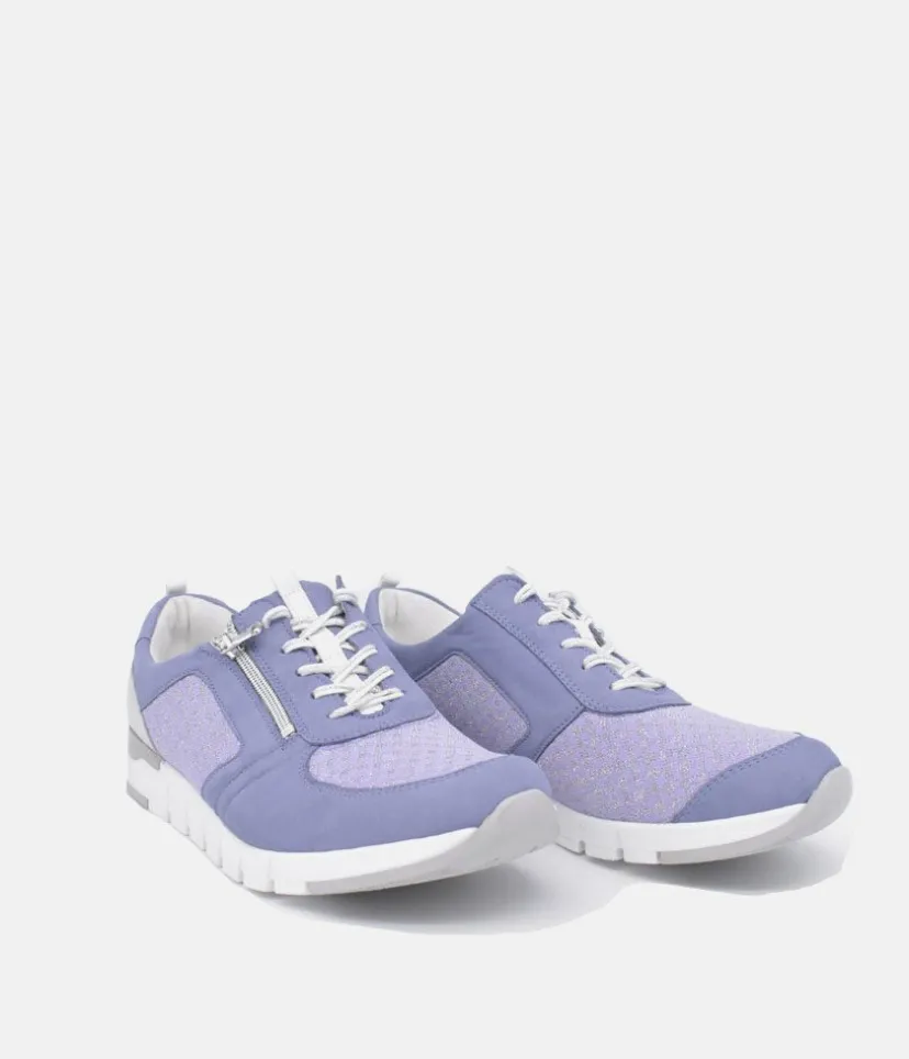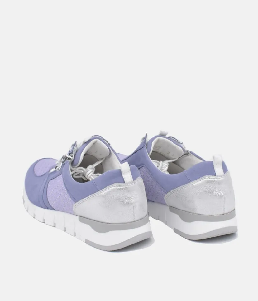 These are a great looking Sporty comfortable choice from the Waldläufer collection. Featuring a high quality Lavender upper with contrasting Silver trim and white laces give this sneaker a stylish finish. Very Comfortable to wear ensuring all day comfort – perfect for those long strolls. The integrated air cushion sole reduces hard impacts to a minimum and relieves your joints and the removable Insole insert makes it ideal for using your own insoles if required.