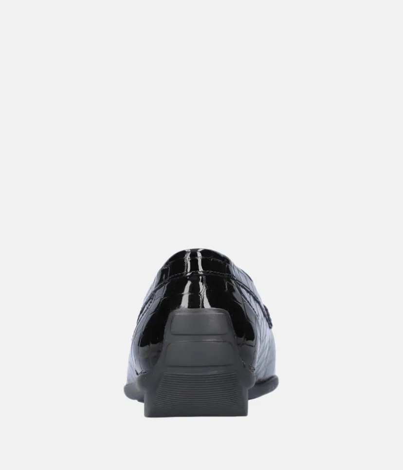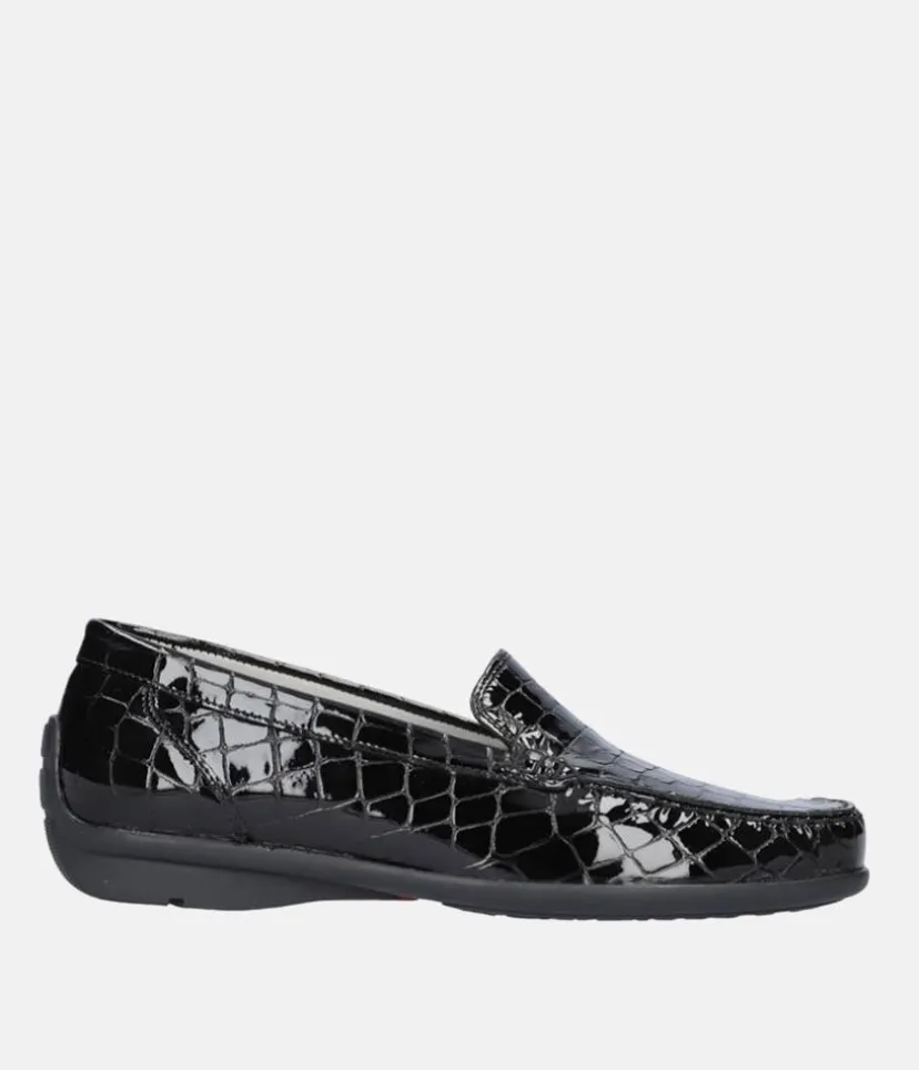 This Loafer from Waldlaufer is the perfect choice if you’re seeking luxurious comfort. Crafted with premium soft leather, this stylish shoe offers up a luxuriously soft feel. The Wide Fit (H) fit offers a comfortable fit and the low heel and flexible sole provides superior comfort and effortless wear. Finished in a timeless antracite patent, these shoes are ideal for for casual wear and leisurely strolls and will provide you with a fashionable yet practical look.