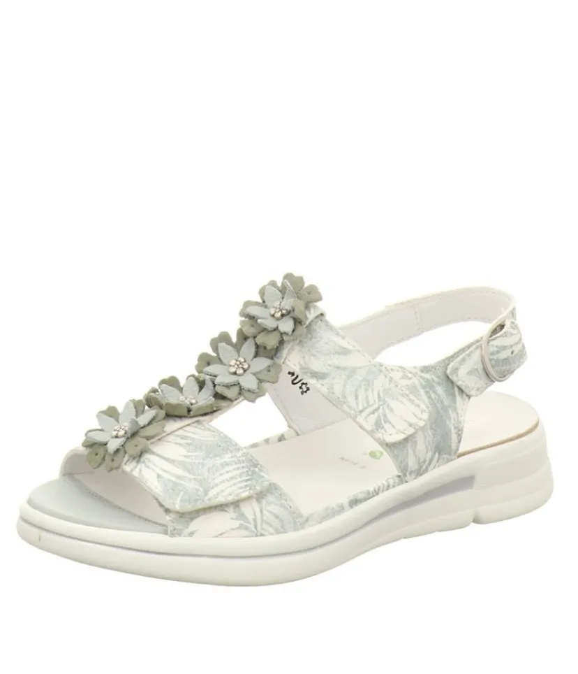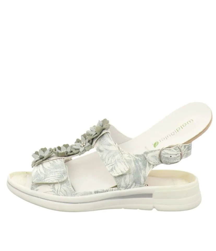 Part of our German wide fitting Collection. This is a pretty Mint green and white sandal with Floral detailing on the front strap. Velcro toe and ankle straps allows for easy on and off and enables this to fit all widths. This sandal is so versatile with leather upper, leather lining and rubber sole with removable insole.