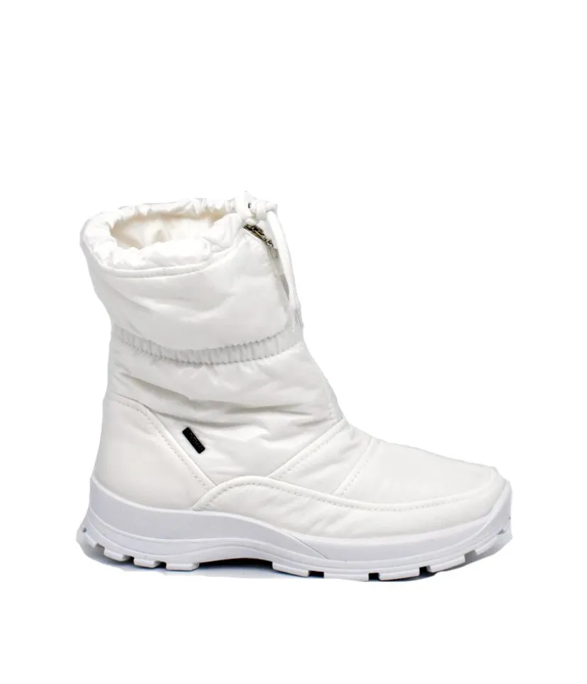 Warm, comfortable and waterproof ladies snow boots. These stunning White boots have a luxurious plush lining and a soft, breathable waterproof upper. Crafted using Top-Dry Tex membrane for a guaranteed waterproof finish sitting atop a modern chunky sole and so practical as it can be washed at 30 degrees. It also knows how to impress when it comes to function, for example with a feather-light, flexible and insulating sole.